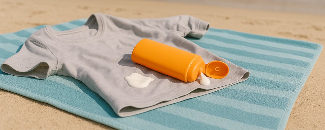 De zon laat zich weer zien, dus we gaan lekker naar buiten. Smeren hoort erbij, maar zonnebrandcrème kan vlekken achterlaten op kleding, zwemkleding en tuinmeubels. Hoe voorkom je dat, en hoe krijg je die vlekken eruit?