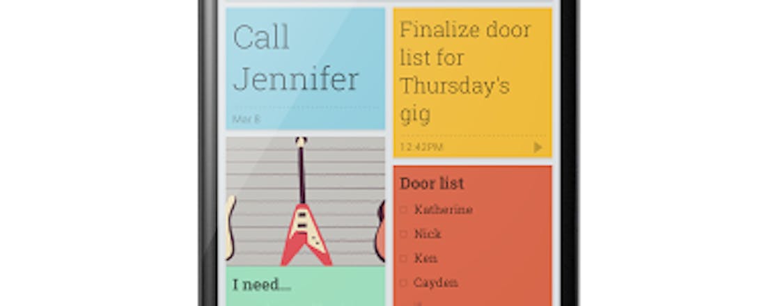 Google heeft in maart een clouddienst om notities op te slaan gelanceerd. Google Keep is de naam. Er is een applicatie voor Android en de notities worden automatisch via Google Drive gesynchroniseerd. Ze zijn ook via de browser te benaderen.