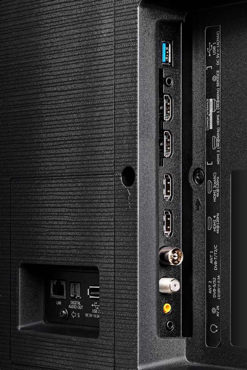 - Aansluitingen: 4x HDMI (2x V2.0, 2x V2.1 eARC/ARC, ALLM, VRR, 4K120), 1x composiet video, 1x stereo minijack, 1x optisch digitaal uit, 2x USB, 1x hoofdtelefoon, 2x antenne, Bluetooth