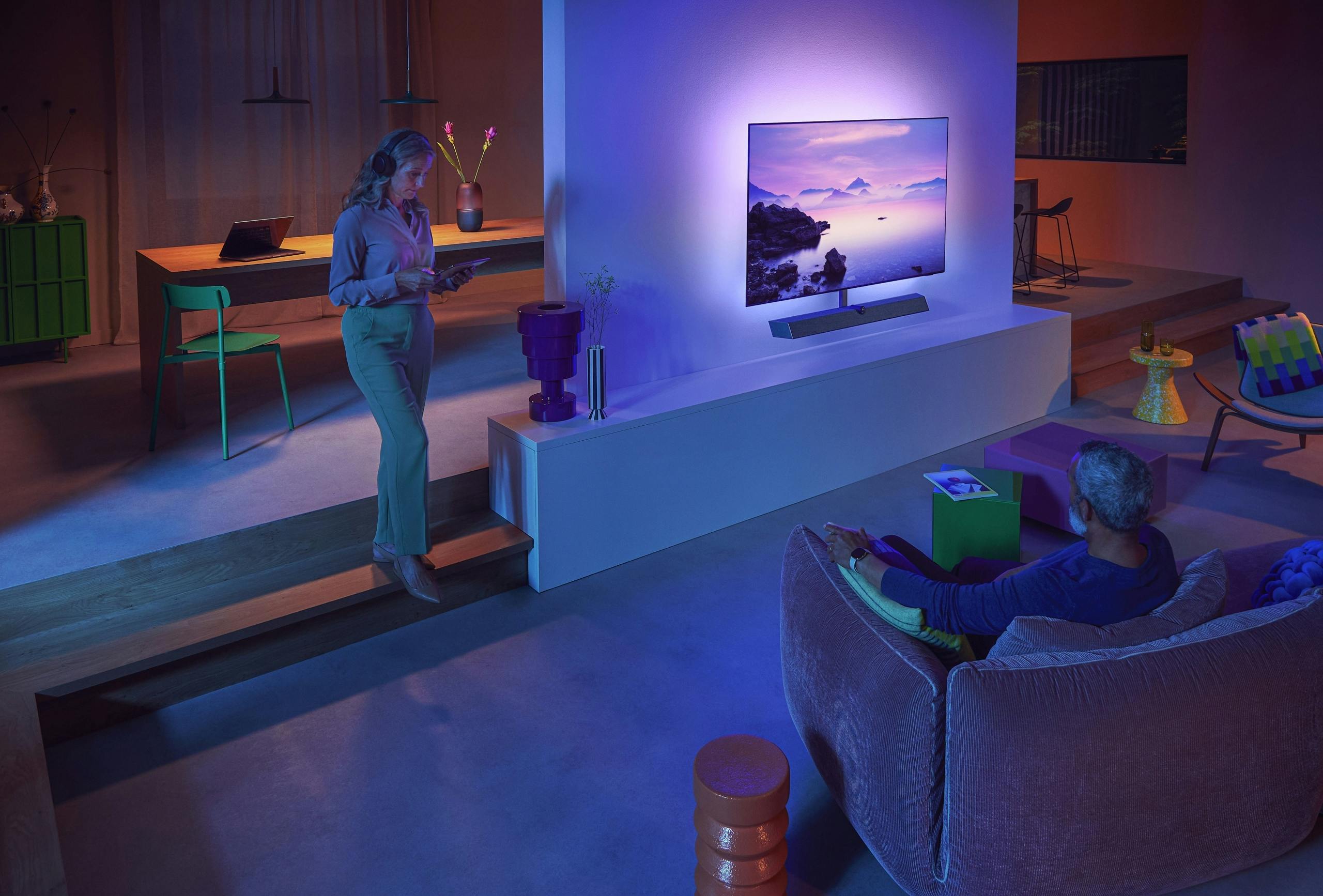 Philips blijft voorlopig nog bij de Android TV interface, maar het kan zijn dat je bij een volgende software update toch de stap naar Google TV maakt. Het verschil tussen beide neemt af, en je krijgt hoe dan ook het ruimste app-aanbod op de markt. Wie de tv wilt opnemen in een multi-room audiosysteem kan dat doen met DTS Play-Fi. Philips levert helaas geen Airplay 2 op zijn toestellen.
