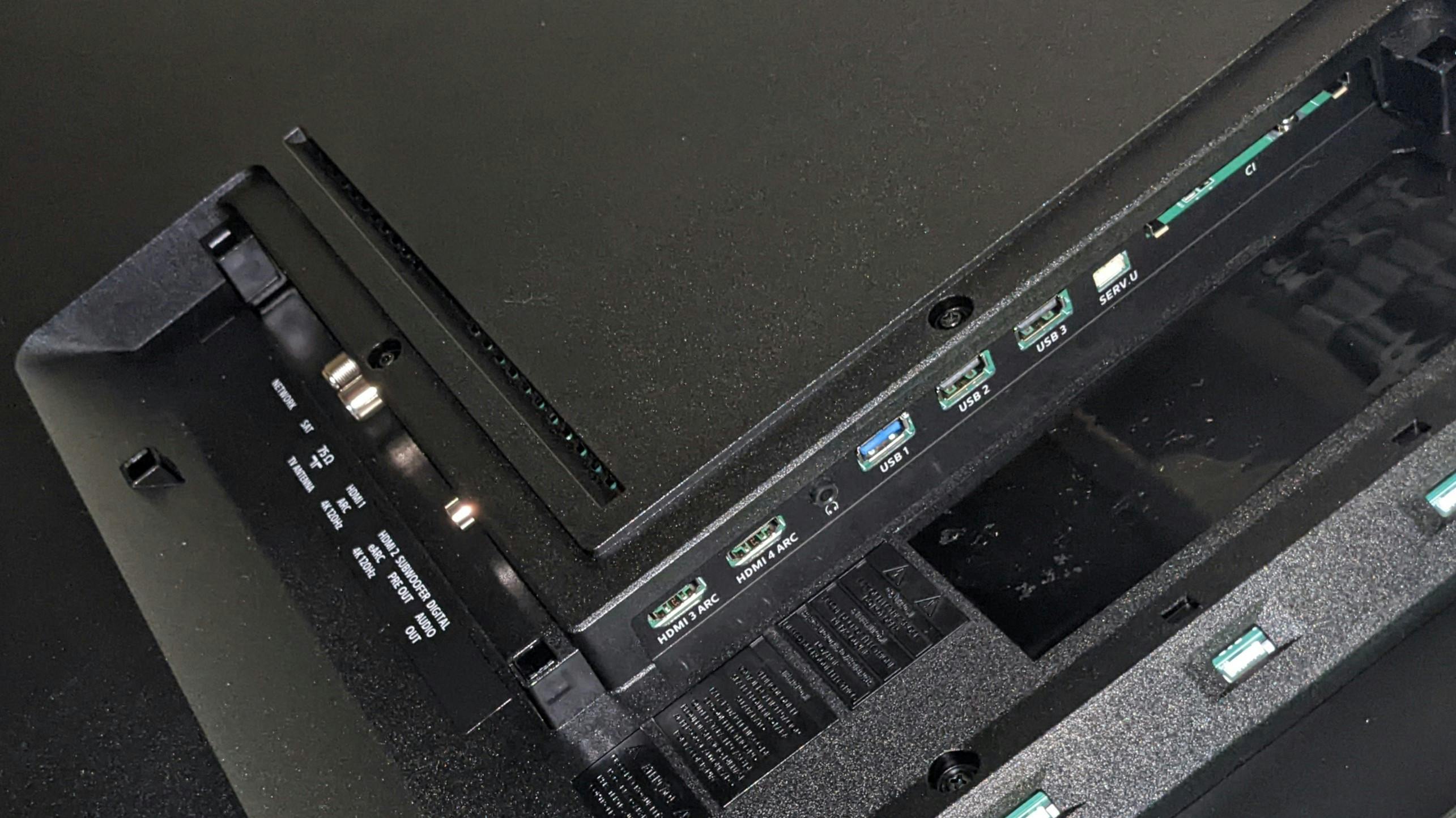 - Aansluitingen: 4x HDMI (2x v2.1 48 Gbps, 2x v2.0 18 GBps, ARC/eARC, ALLM, 4K120 HFR, VRR, AMD Freesync, NVIDIA GSync), 3x USB, 1x optisch digitaal uit, 1x hoofdtelefoon, subwoofer pre-out, 2x antenne, 1x Ethernet, Bluetooth