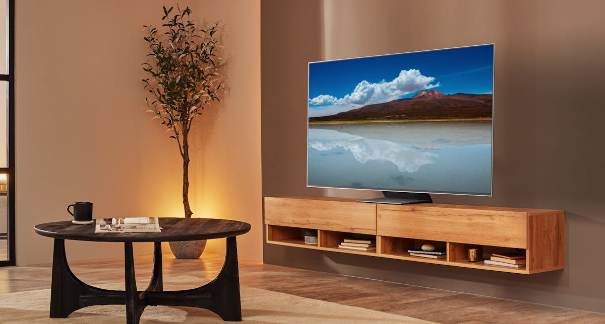 Vermijd sterk invallend omgevingslicht, daarmee benadeel je de zwartweergave. Het is een tip die voor alle tv’s geldt, maar zeker voor deze. We zijn nog steeds niet gelukkig met de nieuwe Smart Hub layout, maar aan functionaliteit is er geen gebrek. De HDMI 2.1-aansluitingen en de uitstekende bewegingsscherpte zijn dan weer troeven voor sport en games. Voor een nieuwe technologie is deze Samsung bovendien helemaal niet te duur geprijsd.