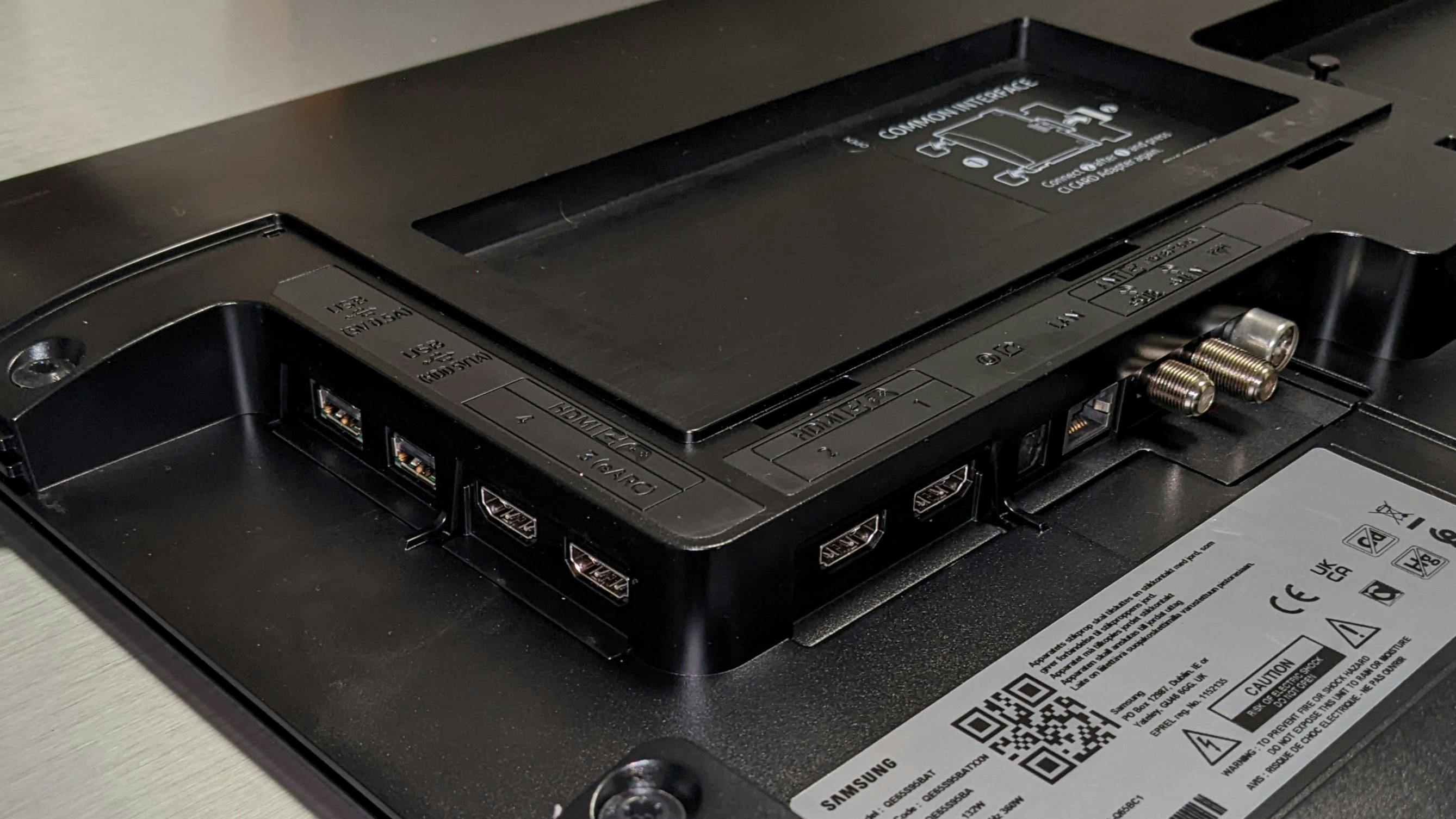 De aansluitingen wijzen naar onder en opzij, we zijn er zeker van dat de S95B er fantastisch uit zou zien aan de muur. Met zijn vier HDMI 2.1-aansluitingen die allemaal 48 Gbps leveren heb je aansluitmogelijkheden genoeg. Er is ondersteuning voor eARC, ALLM, 4K120 en VRR (HDMI VRR en AMD Freesync). De input-lag van 10,1 ms (voor 4K60) en 5,4 ms (voor 2K120) maakt duidelijk dat ook gamers het doelpubliek zijn.