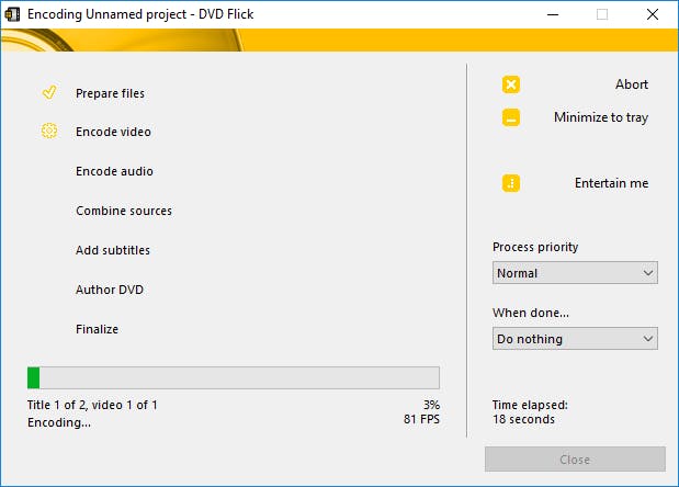 In deze tijd van streamingdiensten zoals Netflix zou je denken dat de dvd wel zo’n beetje z’n beste tijd heeft gehad, maar niets is minder waar; er zijn nog volop huishoudens waar de dvd-speler een prominente plaats naast de tv inneemt en er zijn ook genoeg situaties te bedenken waarin een dvd gewoon een voor de hand liggend medium is, bijvoorbeeld wanneer je zelfgemaakte filmpjes op tv wilt bekijken en geen mediaplayer hebt. Met DVD Flick converteer je niet alleen je video’s naar het voor dvd vereiste mpeg-formaat maar je kunt er ook complete menu’s mee maken om je schijf een professioneel tintje te geven.