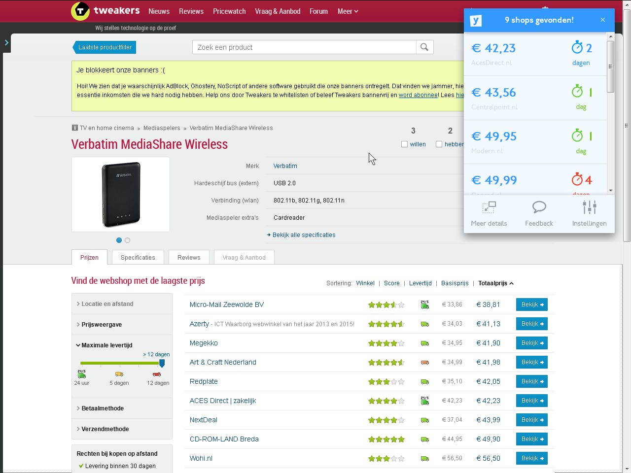 We kopen steeds meer online en regelmatig openen nieuwe webshops hun deuren. Zijn deze allemaal betrouwbaar en krijgt u er wel de beste deal? Het is bijna niet meer na te gaan. Natuurlijk kunt u voor informatie over prijs en betrouwbaarheid terecht bij sites als kieskeurig.nl maar er zijn ook (handiger) alternatieven. Neem nou Yippie, de browser-addon waarover Jurjen Bakker ons tipte. Yippie is er voor alle bekende browsers en kent het aanbod van meer dan 1.700 webwinkels. Bent u aan het shoppen en herkent Yippie het product, dan krijgt u automatisch een popup te zien met de scherpste aanbiedingen elders.