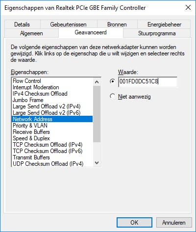 In Windows kun je via de eigenschappen van je netwerkadapter een ander mac-adres instellen.