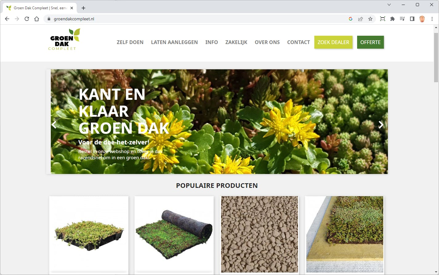 Een groen dak is een andere benaming voor een dak met sedum-beplaning als toplaag. Sedum is een familie van vetplanten die goed tegen droogte kan maar ook in een natte periode standhoudt. Sedum is daarbij onderhoudsarm, eenmaal gelegd heb je er nauwelijks omkijken naar. Doordat sedum anders dan veel andere planten geen dikke bodem nodig heeft en juist wel een heel dicht dek vormt, is het prima geschikt als dakbedekking. De sedum komt op de reguliere dakbedekking en levert vanaf de eerste dag vele voordelen.
