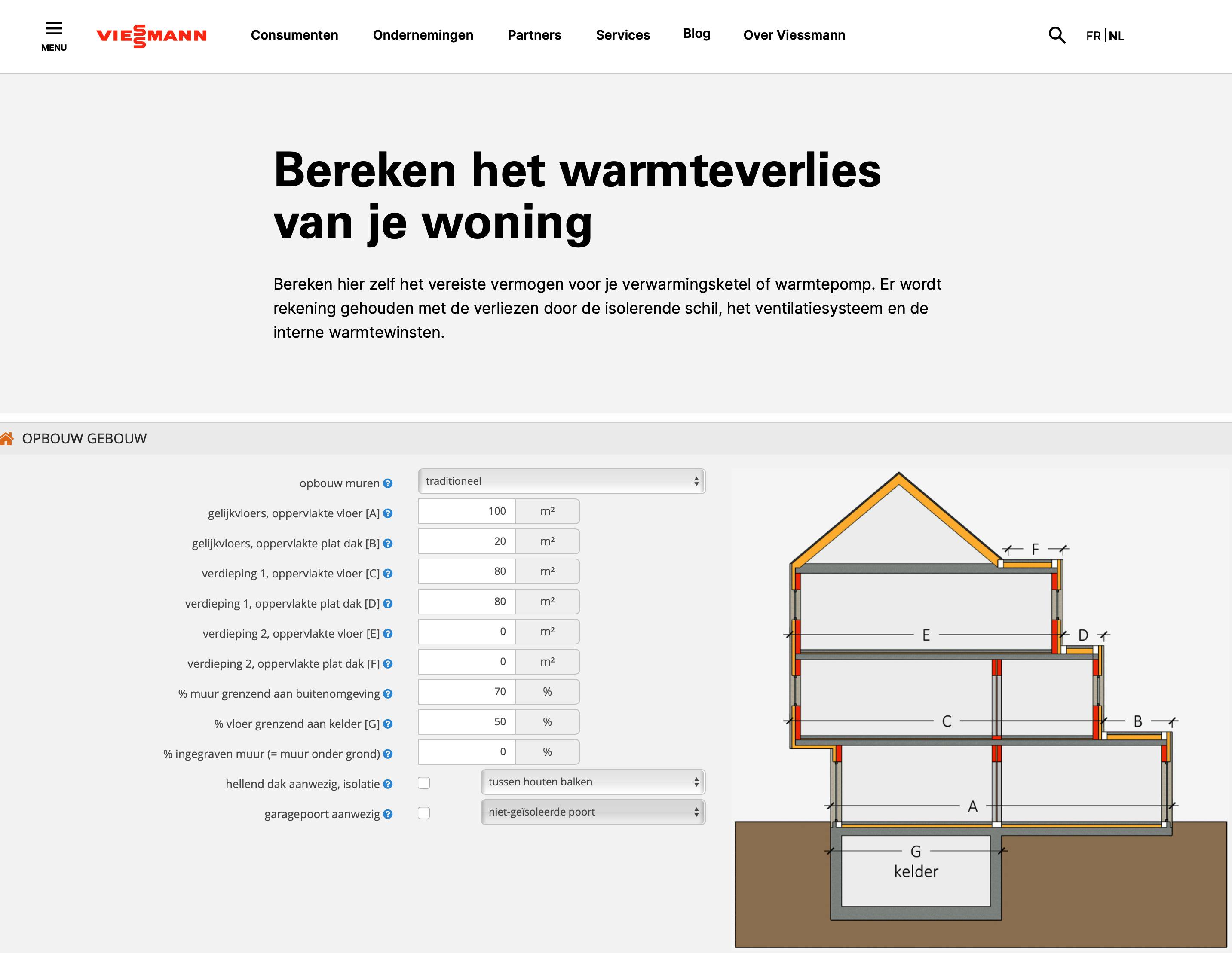 Heb je een recent energieprestatiecertificaat van een onafhankelijk expert ontvangen, dan heeft die de berekening al gemaakt. Bij Viessmann staat een uitgewerkte online tool om zelf het warmteverlies vrij nauwkeurig te berekenen. Hier geef je de kwaliteit van de isolatie in, de oppervlakte van de ramen, de kwaliteit van de ramen, het ventilatiesysteem en het percentage van de woning dat moet worden verwarmd. Bovendien noteer je de gewenste binnentemperatuur en de koudste buitentemperatuur die het verwarmingssysteem moet kunnen opvangen.