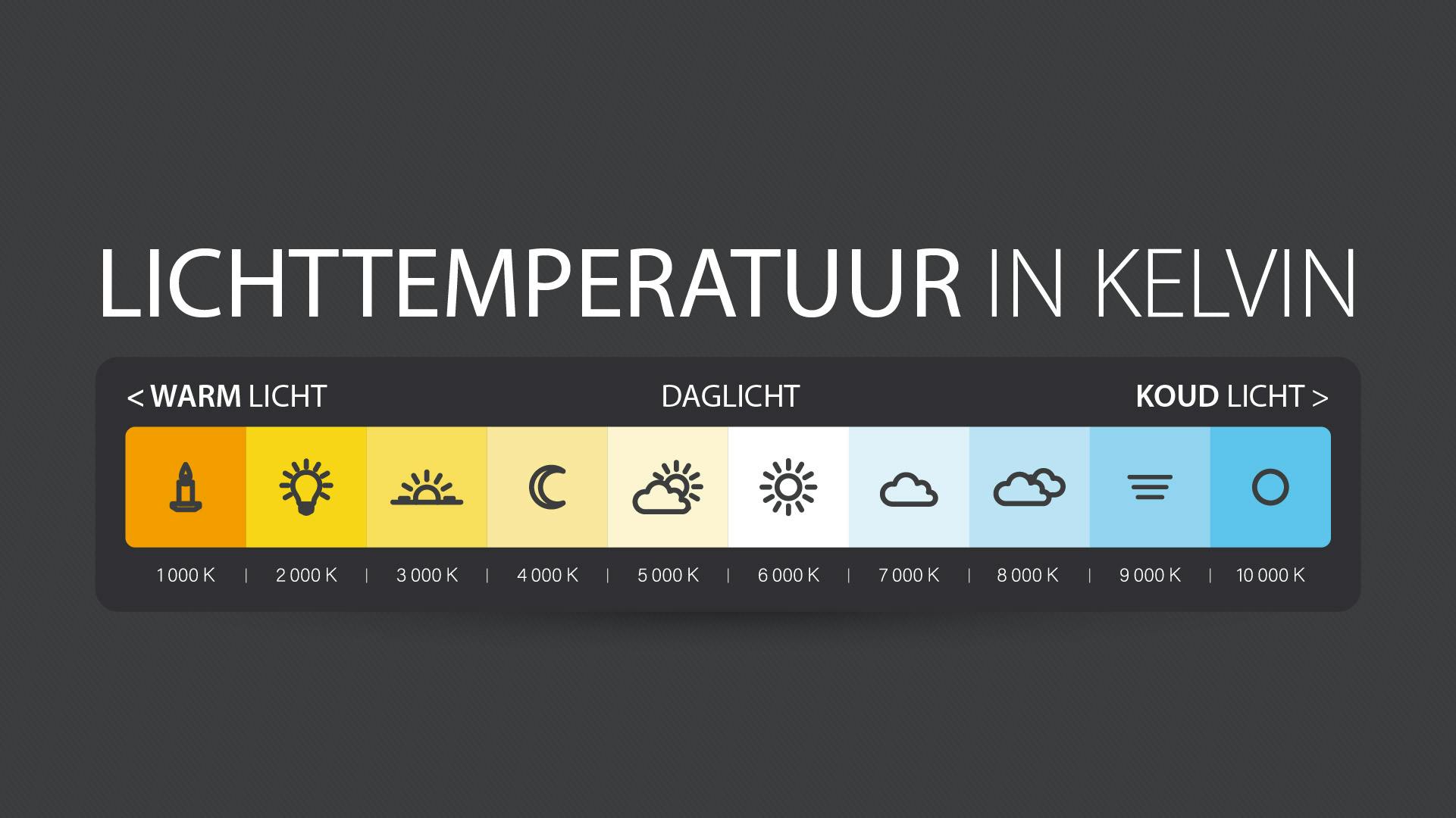 Een gloeilamp van 75 watt kan al worden vervangen door een ledlamp van 5 tot 8 watt. Let daarbij wel op de kleurtemperatuur. In de beginjaren van ledverlichting brachten die lampen allemaal koud, blauw licht. Vandaag zijn ledlampen beschikbaar in warm, extra warm licht of zelfs daglicht. De lichtkleur wordt weergegeven in kelvin. Hoe lager het getal, hoe warmer de kleur. Elke gloeilamp kun je dimmen, maar niet elke ledlamp ondersteunt een dimmer. Je leest op de verpakking of de ledlamp geschikt is voor dimmers.