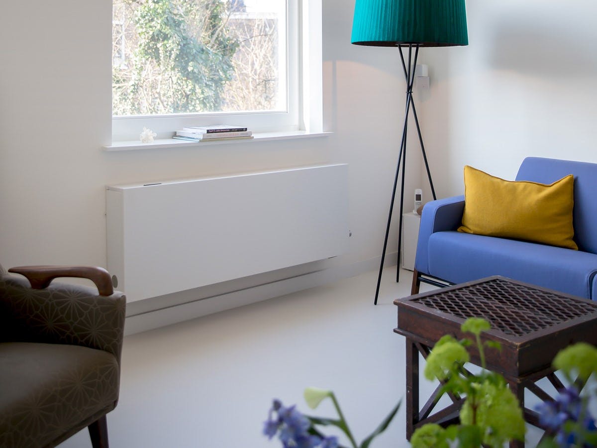 De andere mogelijkheid is een LT-radiator. Zulke radiatoren kunnen met een lage watertemperatuur de ruimte efficiënter verwarmen, verdelen de warme lucht gelijkmatiger zodat er minder warmteverlies optreedt en zijn vele malen sneller dan de traditionele radiatoren en vloerverwarming die nu vaak in woningen geïnstalleerd zijn. Bovendien zijn ze eenvoudig te installeren, doordat ze de huidige radiatoren vervangen en aan te sluiten zijn om het bestaande leidingsysteem. Sommige van deze radiatoren hebben een speciaal systeem met geïntegreerde ventilatoren en kunnen daarmee in combinatie met een duurzame warmteopwekker, zoals een warmtepomp, frisse lucht laten circuleren in huis. Zo kun je in de winter verwarmen én in de zomer koelen op een energiezuinige manier.