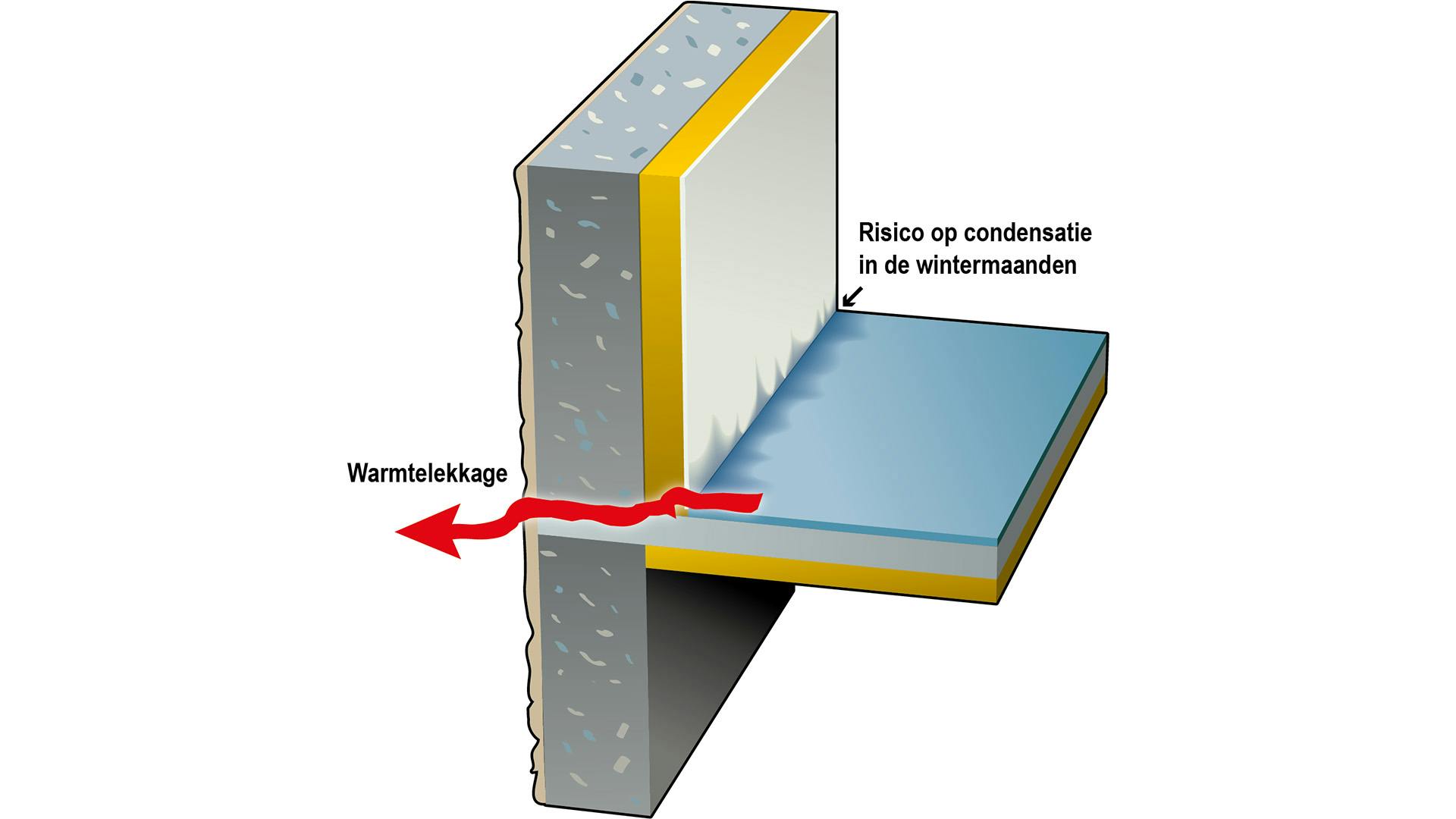 Tegenwoordig is bij nieuwbouw de afwerking steeds belangrijker. Gelukkig maar, want zo’n koudebrug is niet alleen een warmtelek, hij trekt ook condensatie aan. Het vocht in de binnenlucht slaat neer op de koudste oppervlakken in de woning. Daar condenseert het, ontstaan er druppels en veroorzaakt het schimmel. Daarom is het belangrijk dat een koudebrug snel wordt verholpen. Typische pijnpunten zijn de niet-geïsoleerde betonnen draagbalk boven een raam of een gebrekkige geïsoleerde rolluikkast. Ook vloerplaten die tegen de buitenmuur aan zijn gemonteerd, komen vaak voor.