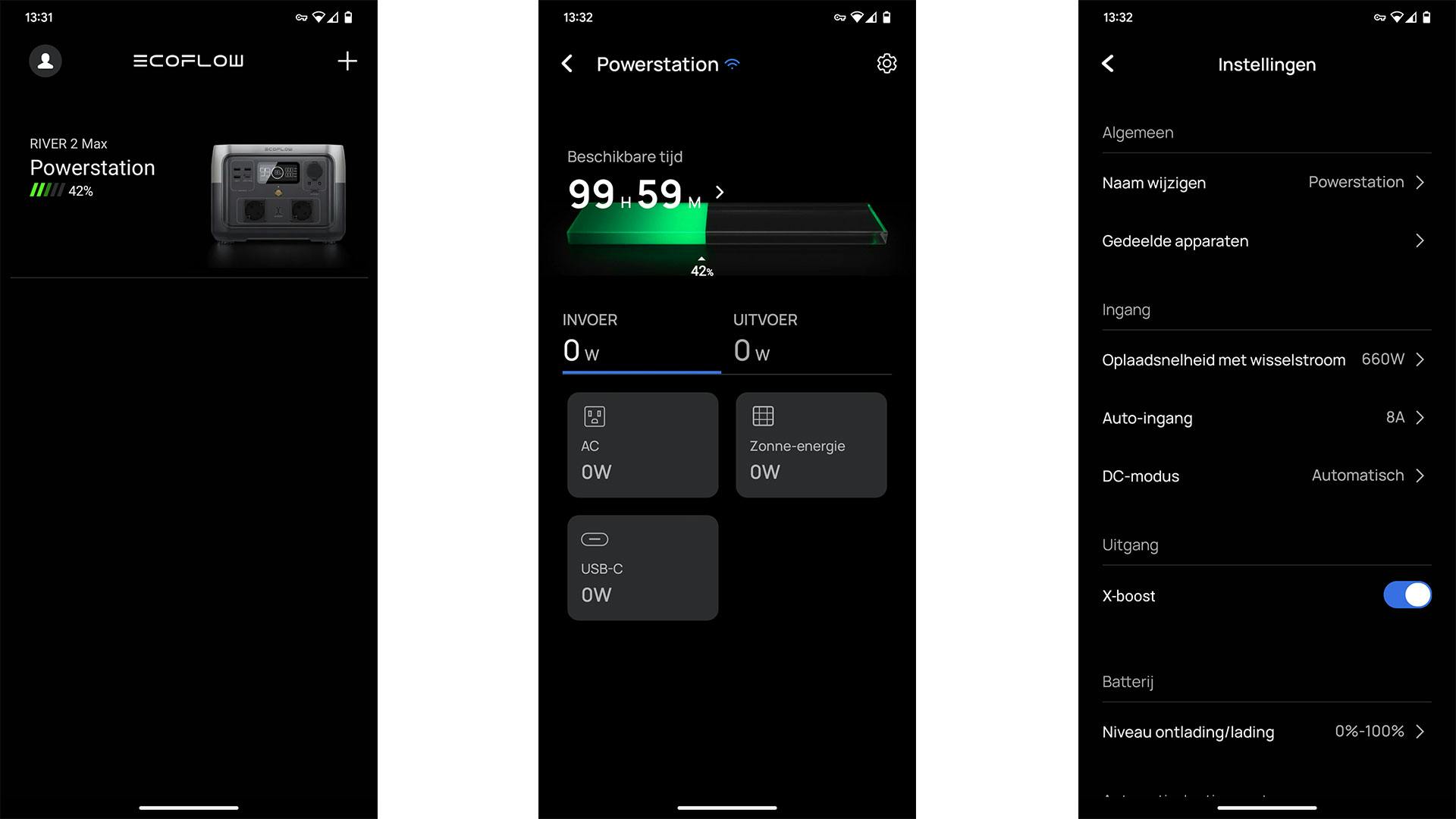 Een snelle rekensom leert dat we dan een investering bereiken van ruim duizend euro. Ecoflow biedt daarnaast andere powerstations aan van 299 en 799 euro. Het verschil zit hem voornamelijk in het aantal wattuur. De River 2 biedt 256Wh aan, terwijl de Max 512Wh en de Pro 768Wh hebben. Wanneer je de Max oplaadt via het stroomnetwerk, dan is die daar een uurtje mee bezig. Doe je dit via de optionele zonnepanelen, dan kan dit drie tot zes uur kosten. Dat laatste hoeft geen probleem te zijn; zeker niet als we met die zonne-energie apparaten in huis van stroom kunnen voorzien.