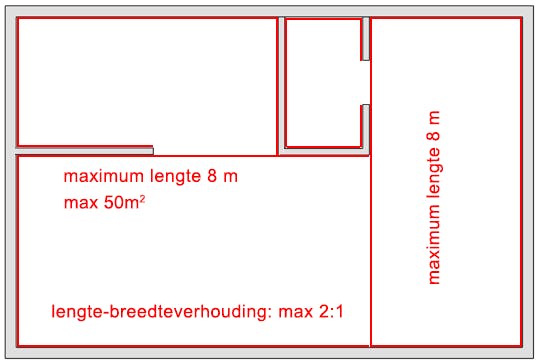 • De verhouding tussen de lengte en breedte mag maximaal 1:2 bedragen.