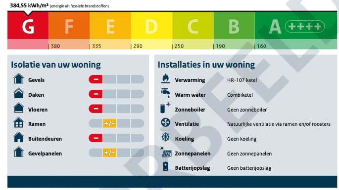 Een energielabel geeft aan hoe energiezuinig een woning is. De schaal loopt van A++++ (zeer zuinig) tot G (weinig zuinig). Hoe hoger het label, hoe lager je energierekening en hoe kleiner je ecologische voetafdruk. Bij de koop of verkoop van een woning is een geldig energielabel verplicht. Een energielabel wordt toegekend op basis van de eigenschappen van de woning en de bijbehorende isolatie, of er zonnepanelen of een warmtepomp aanwezig zijn, wat voor soort ramen er zijn toegepast en of je gebruik maakt van een thuisbatterij.