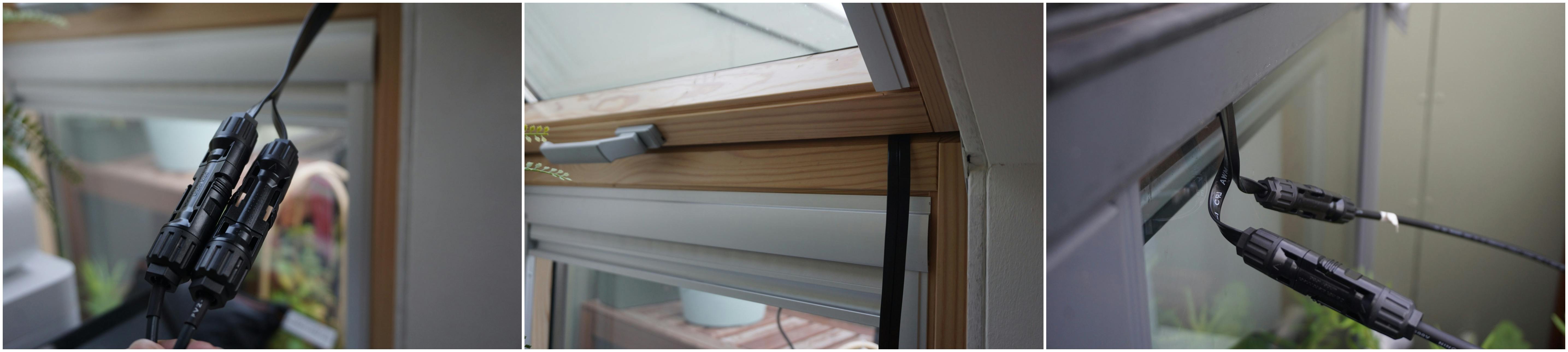 Als het zonnepaneelsysteem hangt, heb je kabels nodig om de opgewekte zonne-energie naar je micro-omvormer en/of accu te brengen. Die kabels zijn er in verschillende soorten en maten, en daarom ook met verschillende prijzen. Zoek vooraf uit welk type kabel jij nodig hebt. In ons geval zijn dat kabels die van buiten (zonnepanelen) naar binnen (micro-omvormer en accu) lopen. Ecoflow verkoopt zo’n ‘super flat mc4’-kabel voor 19 euro per stuk. Die kabel is niet zo lang, dus wellicht heb je nog een verlengkabel nodig (drie meter, 41 euro per kabel). Het kan nogal een dure kabelwirwar worden, maar de platte kabel werkt naar behoren en gaat zonder kier via ons Velux-dakraamsysteem naar buiten.