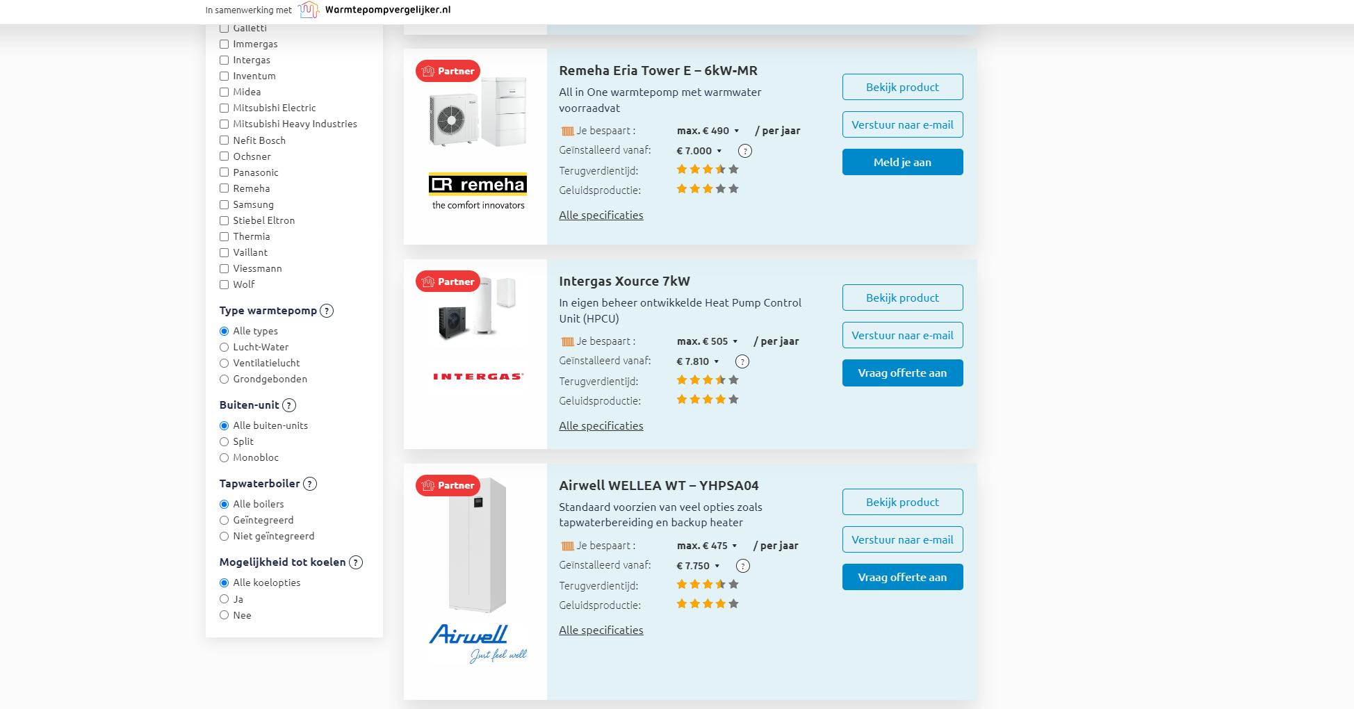 Wil je op een makkelijke manier modellen, aanbieders en prijzen vergelijken, dan is een offertetool een handig hulpmiddel. Vergelijkingssite Kieskeurig.nl – de zustersite van ID.nl – biedt verschillende van dat soort tools aan, bijvoorbeeld voor zonnepanelen, voor airco’s en voor warmtepompen.