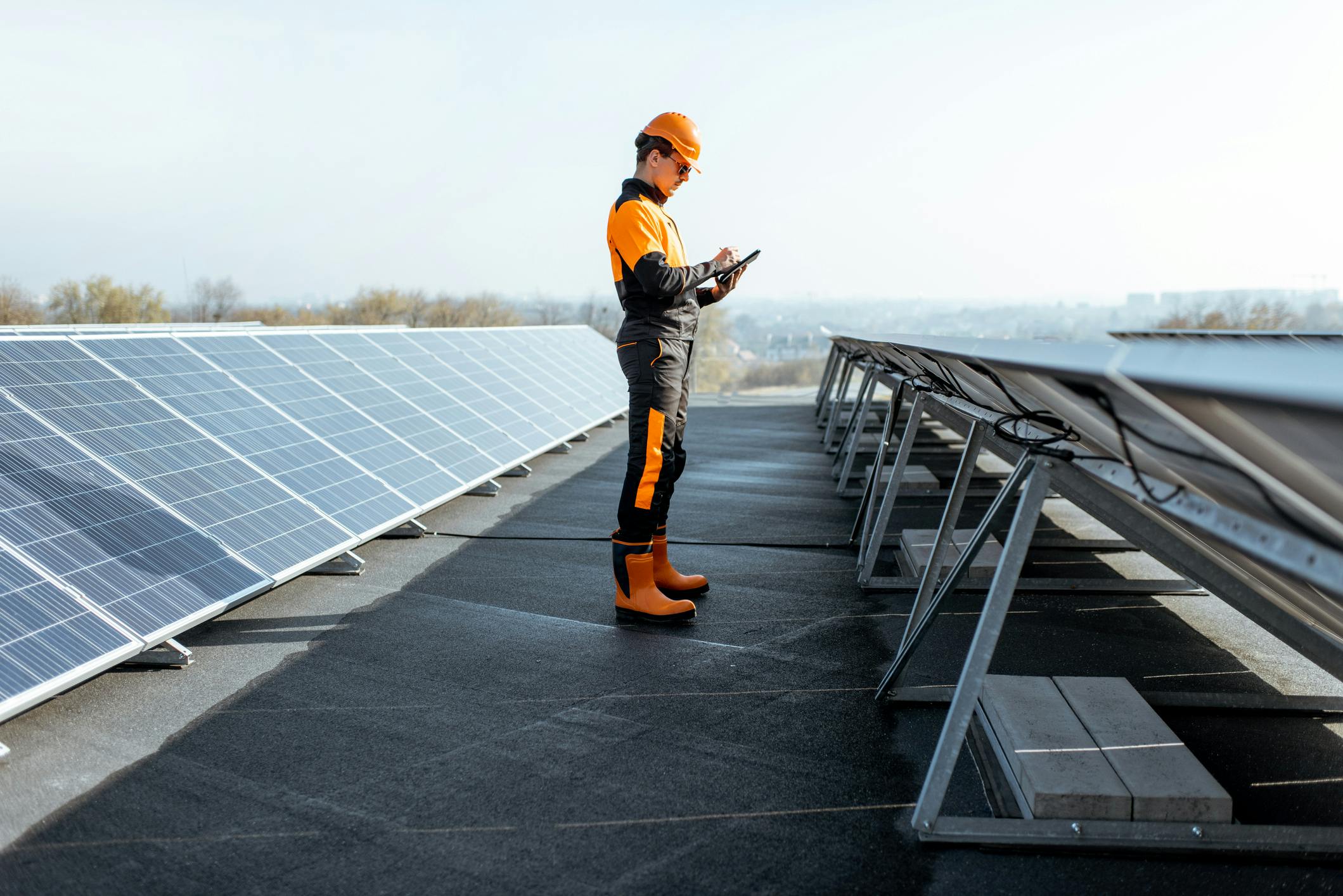 Op platte daken gebruiken installateurs in de regel een ballastsysteem, omdat vastgeschroefde systemen lekkage tot gevolg kunnen hebben. Ballast kan worden verkregen middels grindtegels of grindzakken bovenop een aluminium frame, of door gebruik van een plastic frame dat al van binnen verzwaard is. Het is mogelijk om ballastsystemen aan de opstaande randen rondom een plat dak te monteren, maar er wordt niet in het dak zelf geschroefd. Om zicht- en windredenen moeten zonnepanelen op platte daken in ieder geval een halve meter van de rand af staan. En als de wind vrij spel heeft, is er mogelijk extra ballast nodig.