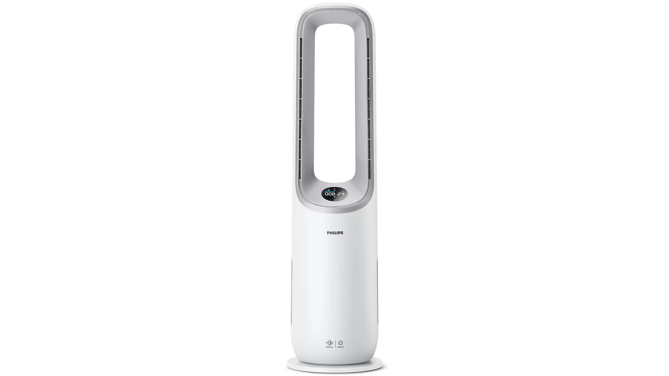 Maar dat is niet alles: de Philips Air Performer 7000 Series is namelijk ook een ventilator, en niet zomaar eentje. De krachtige, schone luchtstroom die uit het apparaat komt koelt de ruimte razendsnel af, en door de bijna volledige rotatie wordt elk hoekje van de kamer bereikt. Je hebt de keuze uit wel tien standen, en ook op de slaapkamer komt de Air Performer tot zijn recht, met een geluidsniveau van slechts 20 dB.