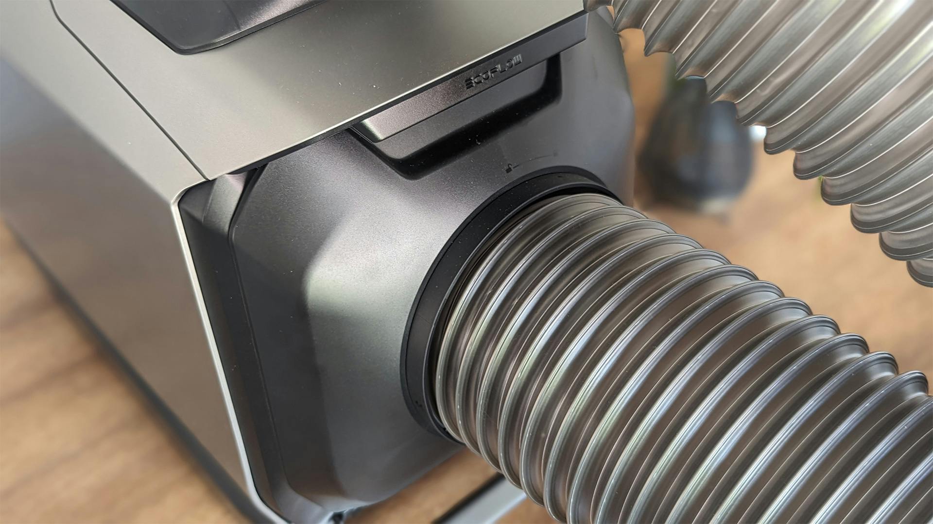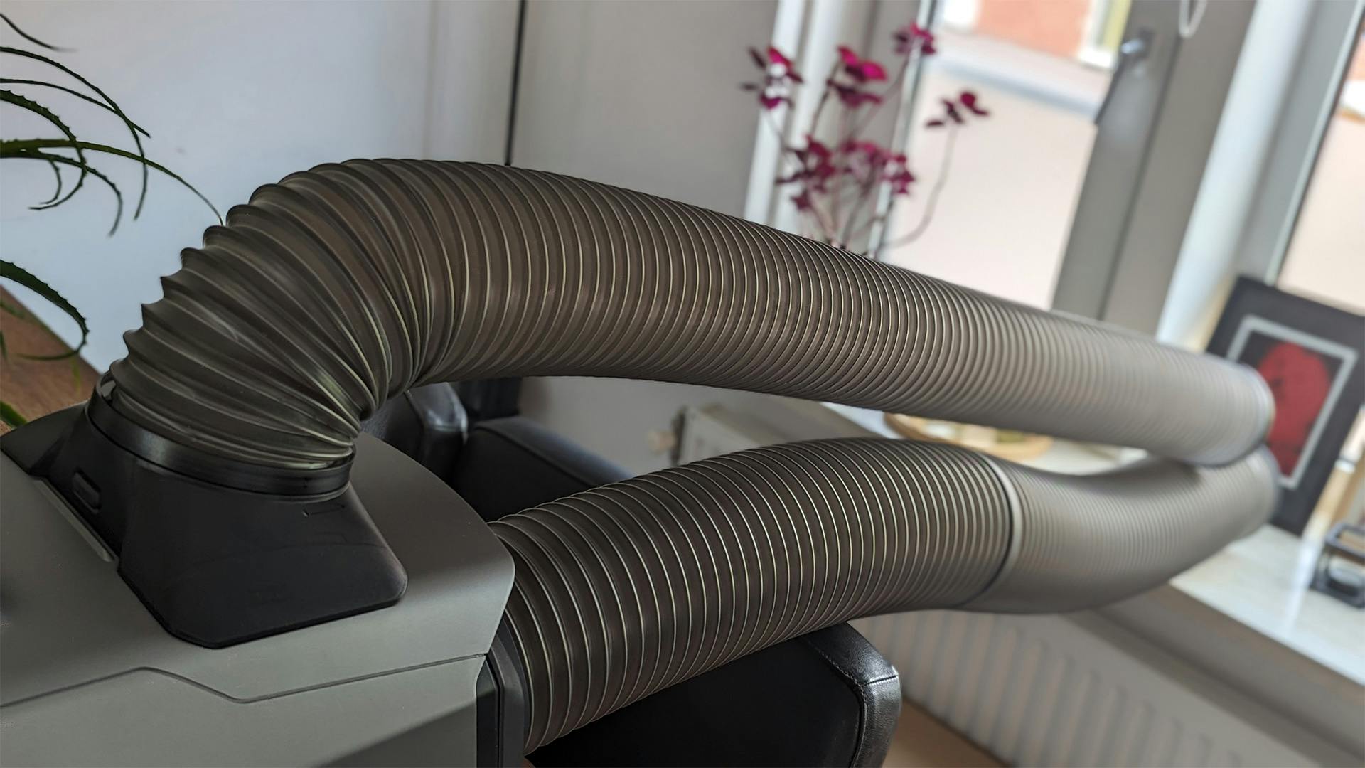Uit de derde opening komt de verkoelde of verwarmde lucht. Je kunt ook een tube op die opening aansluiten. Dat kun je bijvoorbeeld doen wanneer je gaat kamperen. De tube steekt naar binnen terwijl de Ecoflow Wave 2 buiten blijft staan. Je hoef geen tubes op de andere twee opening te installeren terwijl de laatste pijp in de tent naar binnen steekt.