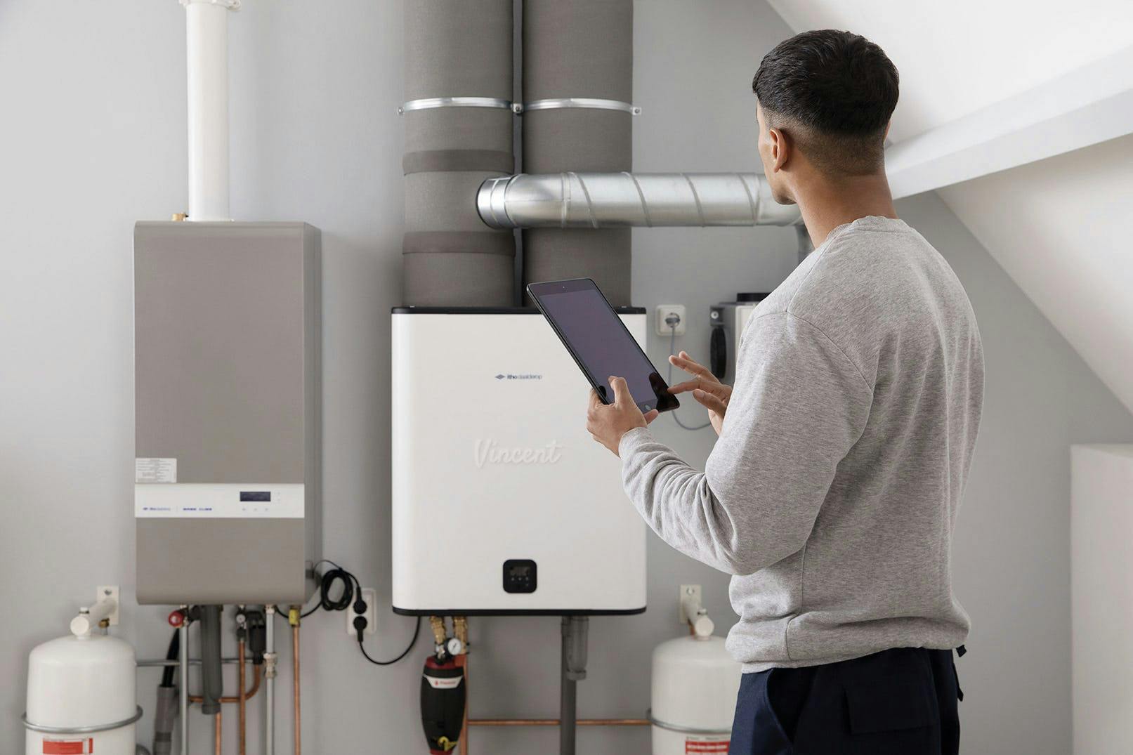 Het gaat om relatief kleine apparaten. De Vincent is 72 cm hoog, 60 cm breed en 45 cm diep, de Nav5Ai is 80 cm hoog, 52 cm breed en 65 cm diep. Daardoor zijn ze gemakkelijk inpasbaar in de stookruimte, op een kleine zolder of onder een schuin dak.