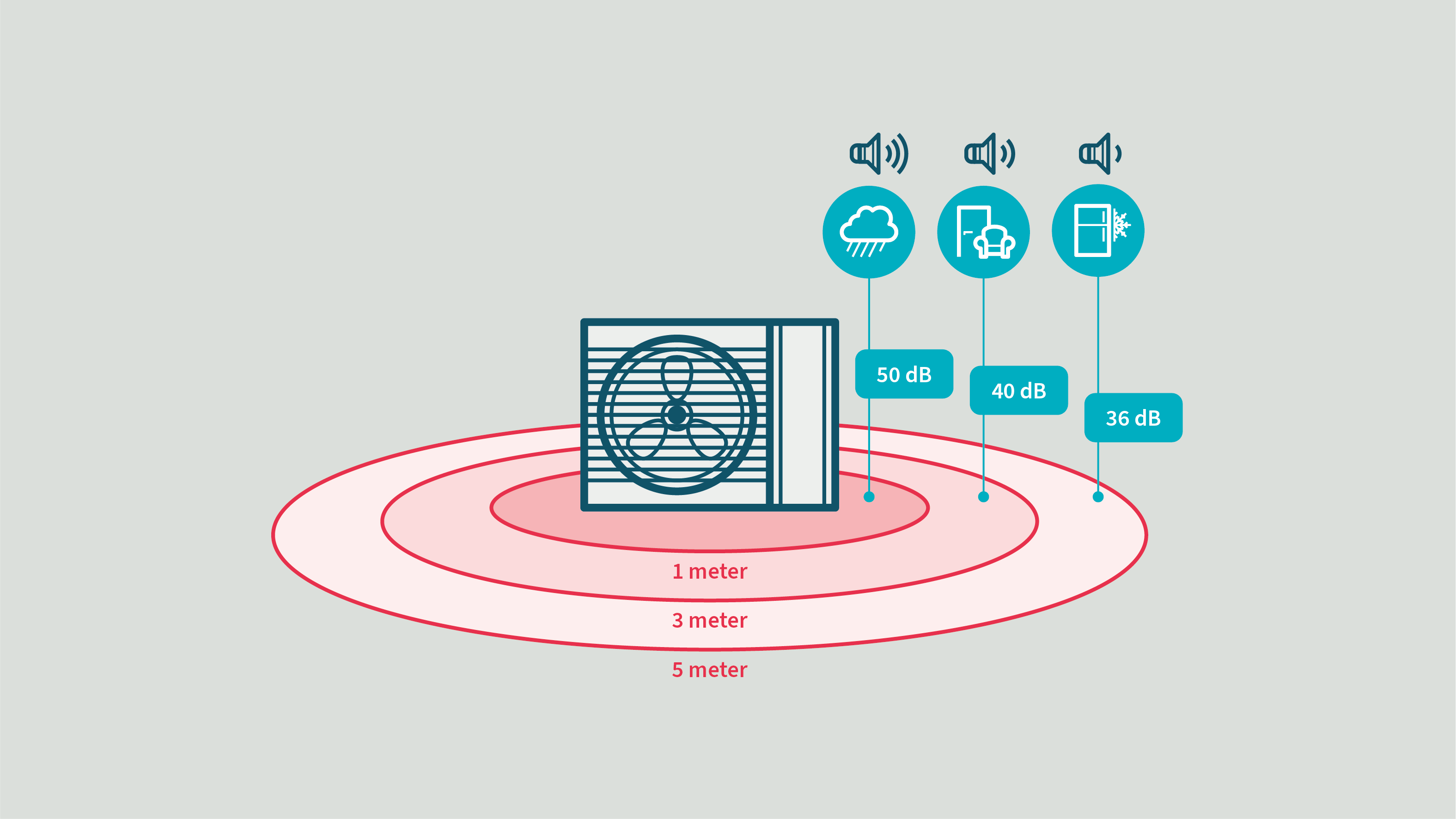 Niet elke warmtepomp maakt evenveel geluid. Wanneer een warmtepomp iets meer vermogen heeft dan strikt noodzakelijk (om in vaktermen te spreken: wanneer hij dus overgedimensioneerd is), hoeven de compressor en de ventilator minder toeren te maken en dat betekent minder geluid. De buiten-unit van een lucht-waterwarmtepomp produceert gemiddeld 35 tot 40 decibel. Ter vergelijking: de vaatwasser in de keuken haalt ongeveer 50 dB, regen en een koelkast produceren ook 50 dB. De binnen-unit heeft over het algemeen een geluidsniveau tussen 18 en 30 decibel.