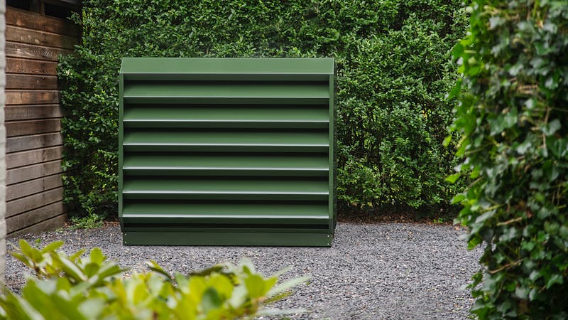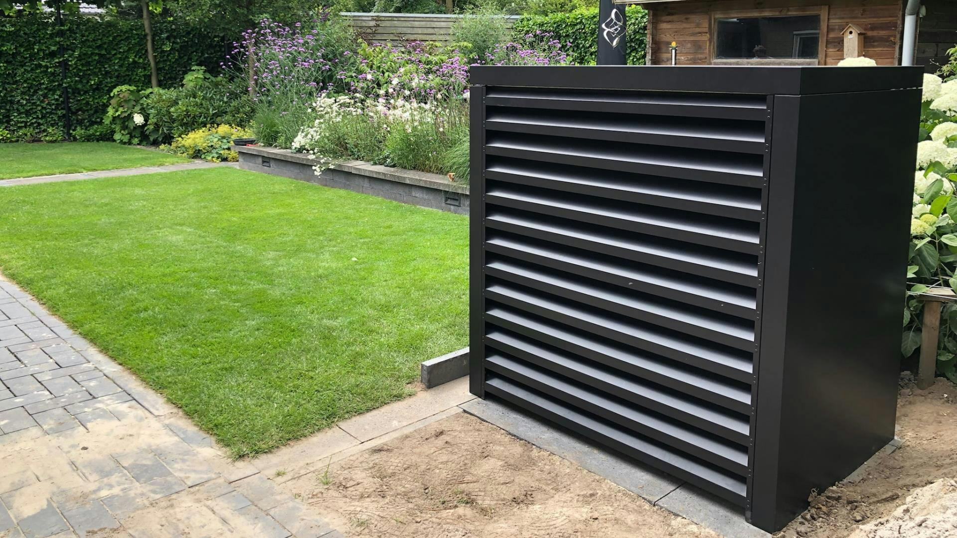 Om het geluid te dempen, kun je een extra omkasting overwegen. Sommige warmtepompfabrikanten leveren zelf een omkasting en daarnaast zijn bedrijven zoals Merford en Reducd gespecialiseerd in deze omkastingen. De laatste komt zelfs met een stikstofneutraal geproduceerd model op basis van kurk en wolvilt. De prijzen van een omkasting beginnen bij 1.200 euro en lopen op tot 3.000 euro. Het is de bedoeling dat ze het geluid tussen 9 en 15 dB reduceren. Door zo’n kast wordt het geluid van de warmtepomp akoestisch geïsoleerd zodat er geen verder aanpassingen nodig zijn. Zo’n omkasting is geen dichte doos. Hij bestaat uit geluidsabsorberend materiaal en bevat lamellen aan de voor- en achterkant. Bovendien is zo’n suskast (zoals er in vaktermen aan gerefereerd wordt) beschermd tegen uv-licht en weersinvloeden.