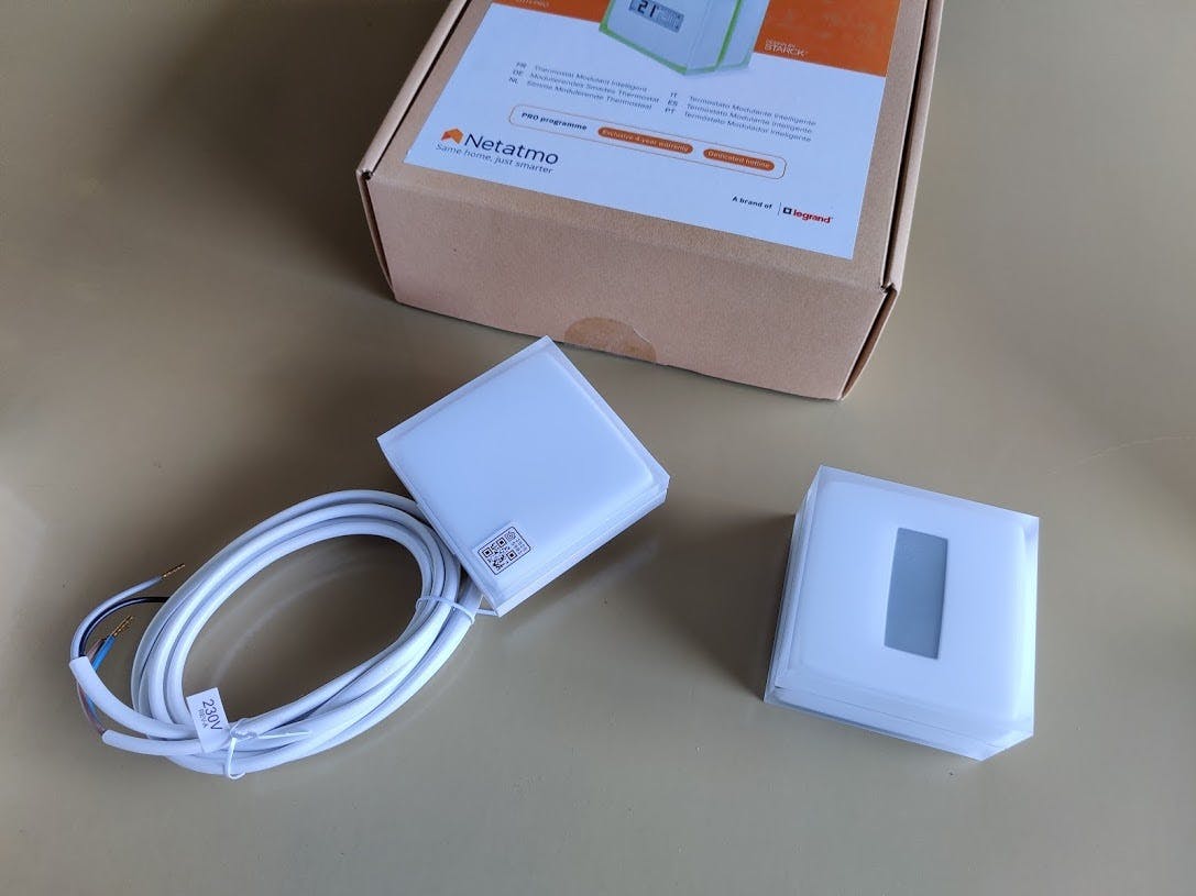 Netatmo modulerende thermostaat ------------------------------- **Prijs:** € 240,- **Scherm:** E Ink **Draadloos:** 802.11b/g/n **Compatibiliteit:** Compatibel met OpenTherm modulerende cv-ketels **Voeding:** 3 x AAA-batterijen **Afmetingen:** 8,3 x 8,3 x 2,2 cm (relais), 8,3 x 8,3 x 2,2 cm (thermostaat) **App:** Android en iOS,