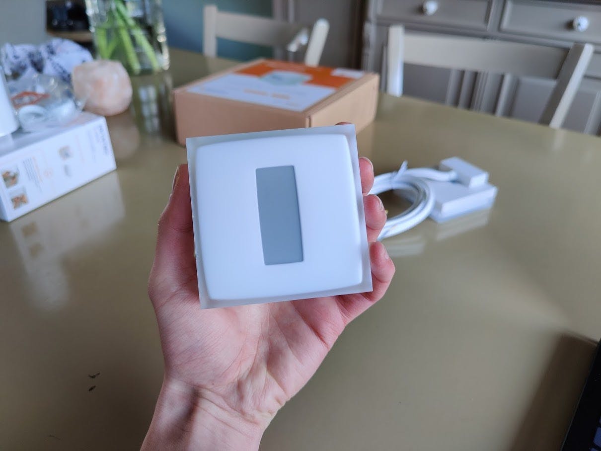 De thermostaat is ongeveer even groot als twee gestapelde portemonnees, valt visueel nauwelijks op en je kunt de temperatuur handmatig veranderen door op het apparaatje te drukken. Met één van de vier kleurenstrips (geel, blauw, groen en oranje) geef je het uiterlijk een wat vrolijker tintje. De meningen over het ontwerp lopen hier thuis uiteen – ik vind Netatmos designkeuze wel leuk.