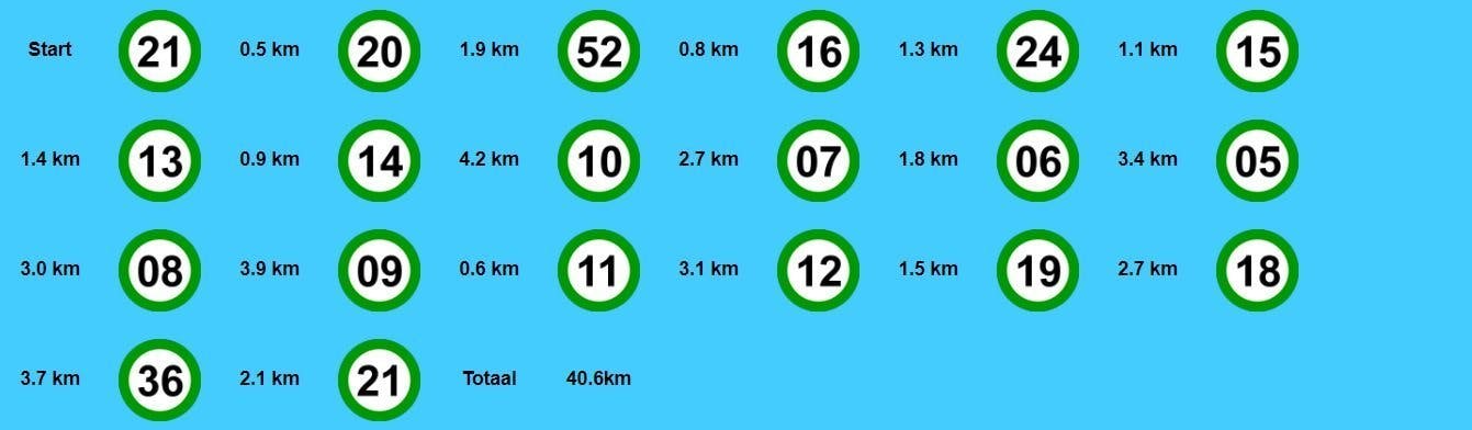 Ook de knooppunten 8 en 9 voeren ons nog langs het water maar vanaf knooppunt 11 verandert het landschap weer in akkers, bossen en velden. Vanaf nu is de terugreis begonnen en maken we het rondje compleet tot we weer bij knooppunt 21 in Wehe-Den Hoorn terug zijn.