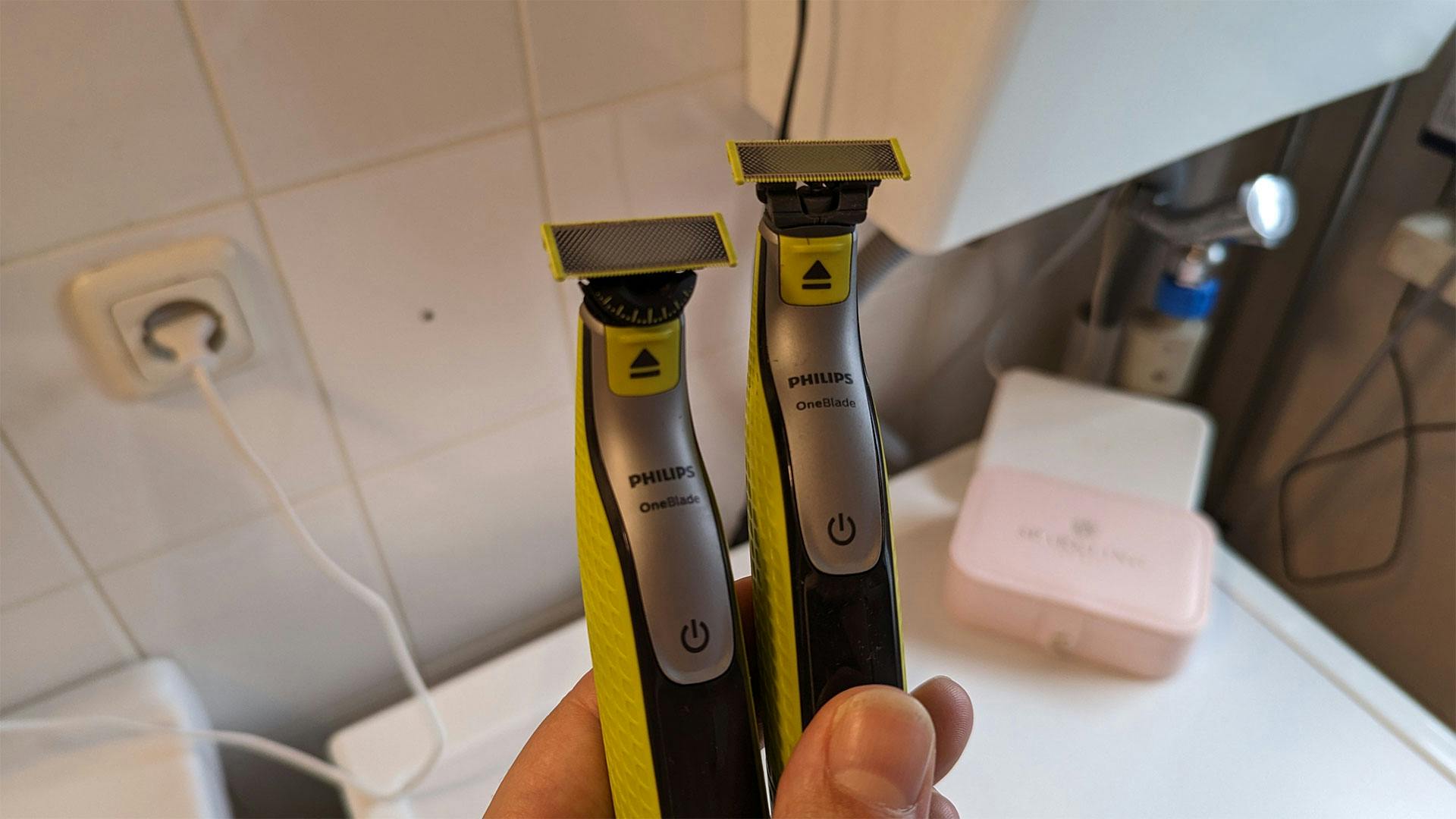 En nu voel je hem waarschijnlijk al aankomen: dat is de variant met de 360 Blade wel. Dat is dan ook het grootste verschil tussen de oude OneBlade en de nieuwe versie: een flexibele kop. Die kop heeft een grotere bewegingsvrijheid, waardoor die veel gemakkelijker de contouren van je huid volgt. Nu hebben mannen over het algemeen een wat strakker gezicht qua lijnen, maar dan nog is het fijn om te zien dat Philips het systeem op deze manier vernieuwde. Want elke kleine hobbel of afwijkende lijn kan bij het oude systeem voor kleine problemen zorgen, in de vorm van sneetjes of irritaties.