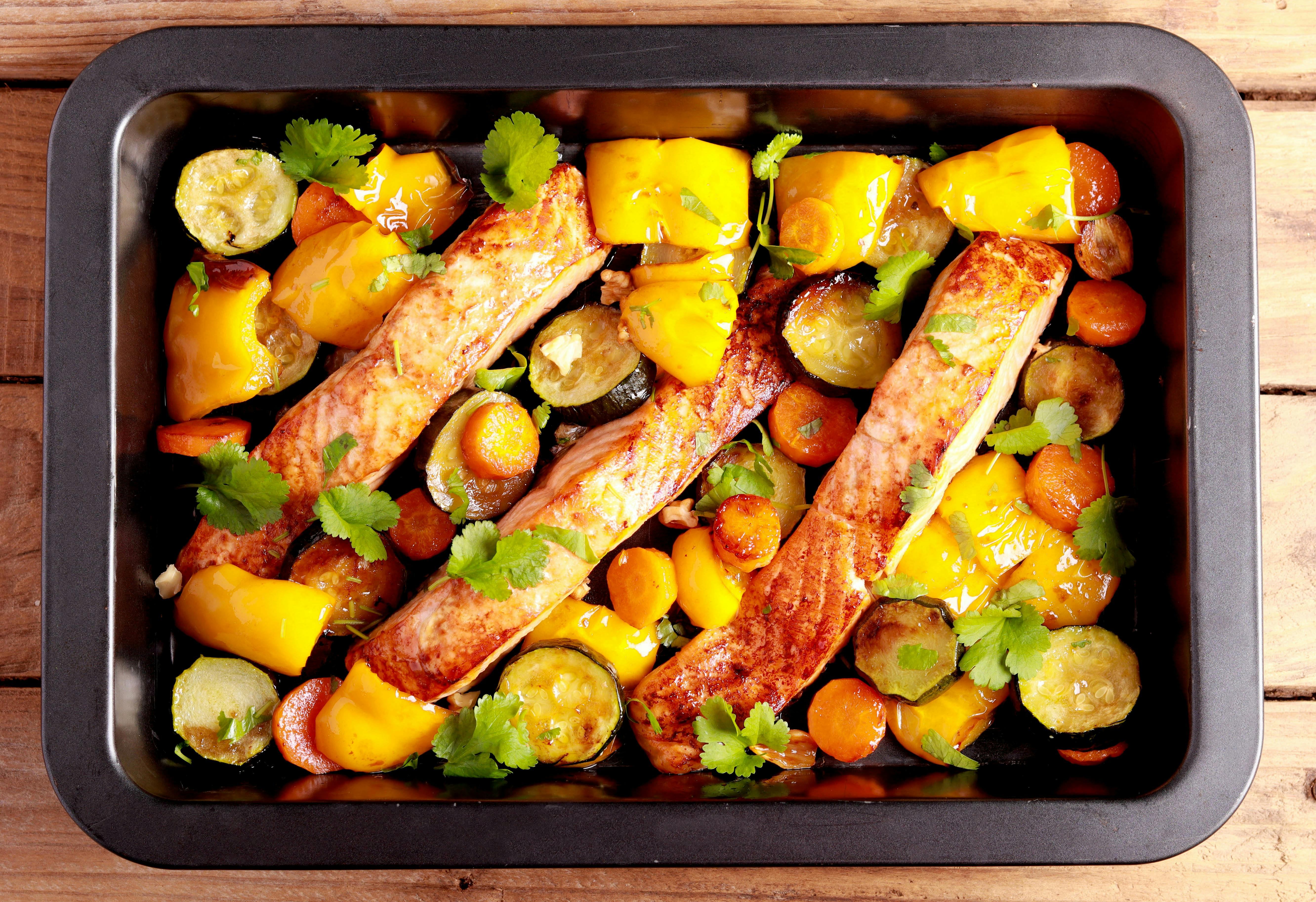 Een traybake is een volledige maaltijd op de bakplaat uit de oven. Leg bakpapier op de bakplaat. Snijd alle ingrediënten in stukjes. Voor een gezonde versie kies je bijvoorbeeld zoete aardappel en je favoriete groenten. Besprenkel met olijfolie, peper, zout en kruiden naar smaak. Dat schuif je in de oven en laat je bakken tot alles gaar en mooi goudbruin en geroosterd is. Schep halverwege even om.