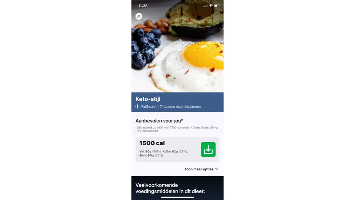Het is een sociale omgeving, dus je hebt een profiel en kunt anderen volgen. Andere gebruikers delen hun voortgang, recepten en waardevolle tips. Dat kan motiverend werken bij het afvallen! In de betaalde premium versie kun je diëten kiezen zoals eiwitrijk en koolhydraatarm, keto-stijl, mediterraan of onderbroken vasten (intermittend fasting). Zo kun je een heel maaltijdplan voor bijvoorbeeld een week downloaden met recepten.