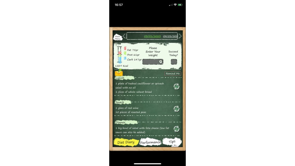 Misschien is de gratis versie van My Diet Dairy (alleen voor de iPhone) niet de meest handige app voor afvallen, maar de look is wel origineel. Het is alsof je in een echt schriftje je performance bijhoudt. Je kunt verschillende diëten volgen en krijgt meteen een dagoverzicht van alles wat je moet eten gedurende de dag, met het aantal calorieën, vetten, proteïnen en koolhydraten erbij. Maar let op: alleen het Mediterrane dieet is gratis toegankelijk. Daarom is My Diet Diary wat ons betreft geen allround gratis afval- of dieetapp. De app geeft wel leuke (gratis) tips.