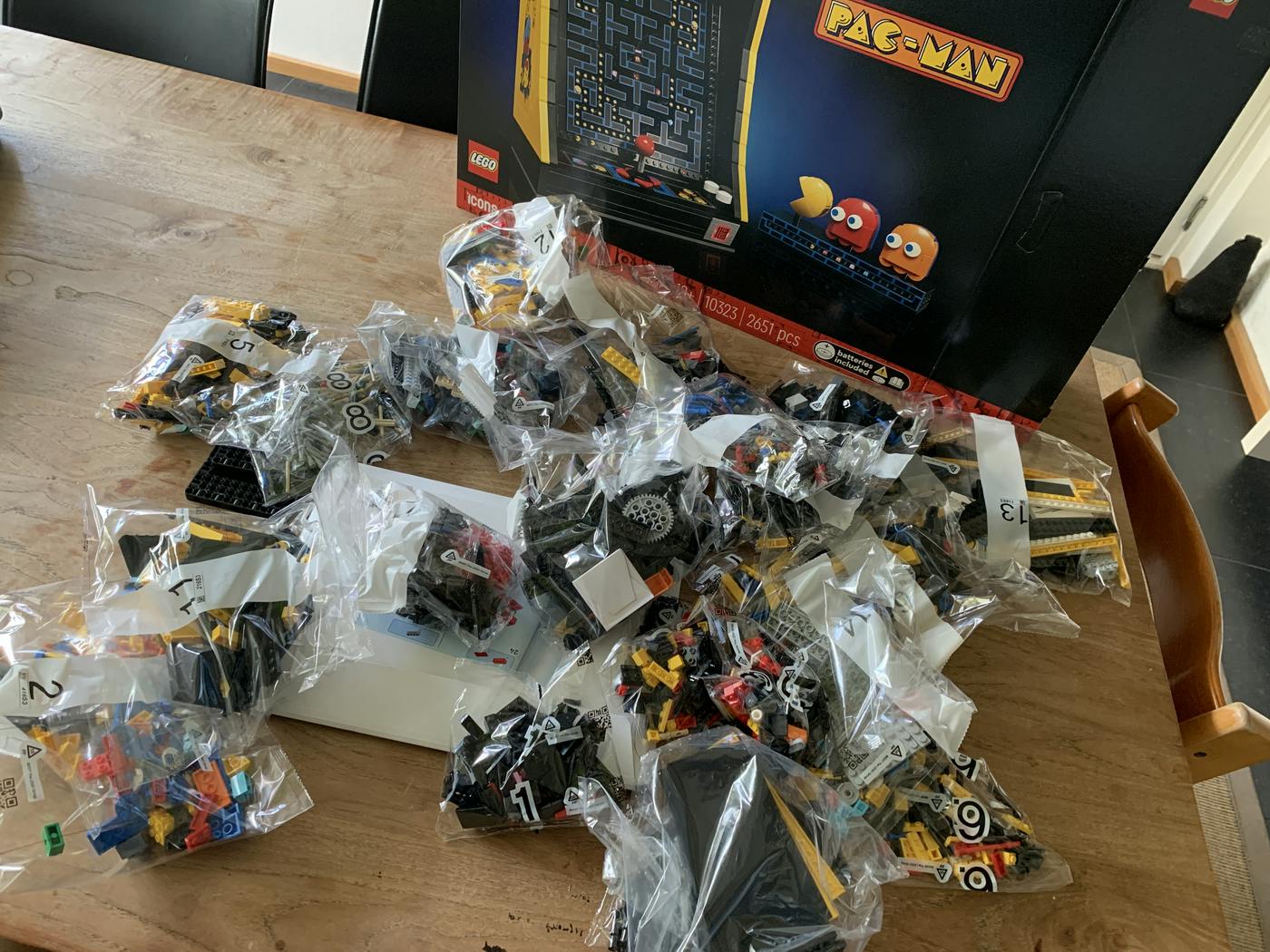 De Pac-Man-set van LEGO bestaat uit 2651 bouwstenen. Een deel daarvan is onvermijdelijk erg klein en minder geschikt voor alternatieve bouwsels. Gegeven de adviesprijs van LEGO komt dat tot een prijs van 10,18 cent per steen, een prijs die LEGO-fans doorgaans nog net acceptabel achten. Om de set volledig op te bouwen kost het je, afhankelijk van je ervaring met het bouwen van LEGO, tussen de vijf en zeven uur. De handleiding is in print beschikbaar, maar ook online als pdf. De laatste is handiger: wanneer je de pdf namelijk bekijkt op een tablet of laptop, kun je inzoomen als iets eens net even minder duidelijk te zien is. In totaal zitten er 459 stappen in het bouwproces; enkele daarvan zijn nog opgedeeld in kleinere stapjes. Opvallend (en iets wat niet vaak voorkomt bij LEGO) is dat bij stap 57 ook weer stenen losgemaakt moeten worden omdat ze alleen nodig blijken te zijn geweest om drie losse delen te fixeren. Later worden al deze stenen ook nog weer gewoon gebruikt.