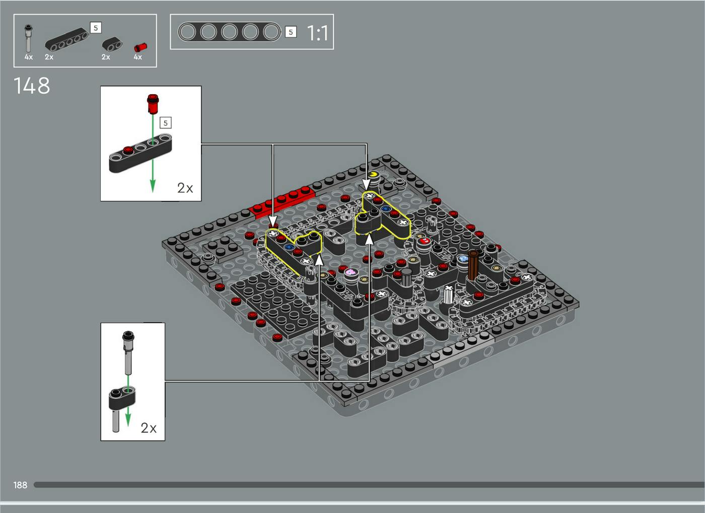 Het meest uitdagende is de bouw van de eigenlijke game. De bouw van dit deel lijkt heel toepasselijk op het solderen van componenten op een printplaat. Het begint met twee zwarte Technic-baseplates vol gaten die aan elkaar gekoppeld worden en daarna gat voor gat gevuld met ofwel een van de vele puntjes op het parkoers ofwel juist een routedeel. Hier komt ook bij uitstek het vakmanschap van de LEGO-designers naar voren: zij weten niet alleen op ongekend verrassende wijze een Pac-Man-doolhof te herscheppen, maar brengen daarbinnen ook nog eens een reeks elkaar najagende en bewegende Pac-Man-figuren tot leven. Dit is echt een prachtig onderdeel om te bouwen. Opvallend is dat wanneer het echt complex wordt, LEGO in de handleiding een techniek toepast die tot dusverre vooral alleen door concurrerende merken bouwsteentjes gebruikt werd, namelijk het uit-grijzen van alles wat al in de voorgaande stappen is gebouwd. Is het een voorbode dat dit vaker gaat gebeuren? Een aanpassen aan de oudere LEGO-bouwer? Of misschien juist wel om het weer ontdekken van LEGO voor de oudere fans gemakkelijker te maken? Hoe dan ook, handig is het zeker.