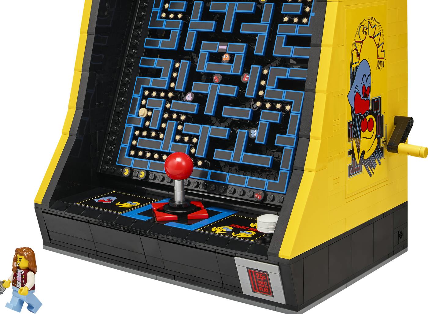 Wie is er niet mee opgegroeid? LEGO-steentjes? Nee, Pac-Man! Dit videospel behoort tot de absolute top in de geschiedenis van de arcadespellen en staat in hetzelfde rijtje als Pong, Space Invaders en Donkey Kong. Ondanks dat het aanvankelijk alleen op geldverslindende spelautomaten in donkere speelhallen en hoekjes van cafés en snackbars gespeeld kon worden, werd het al vroeg razend populair. Pac-Man was dan ook een van de eerste spellen die uitkwamen voor spelcomputers als de Commodore 64, de Sega, Nintendo en natuurlijk ook de pc. Op al die plaatsen en inmiddels natuurlijk ook online wordt het tot op de dag van vandaag gespeeld. Met 54 jaar is het spel ook maar even jonger dan LEGO, een ander iconisch merk en product. De laatste brengt nu een erg mooie bouwset uit met verrassende elementen waarmee Pac-Man op een (half hoge) speelhalautomaat helemaal tot leven komt.