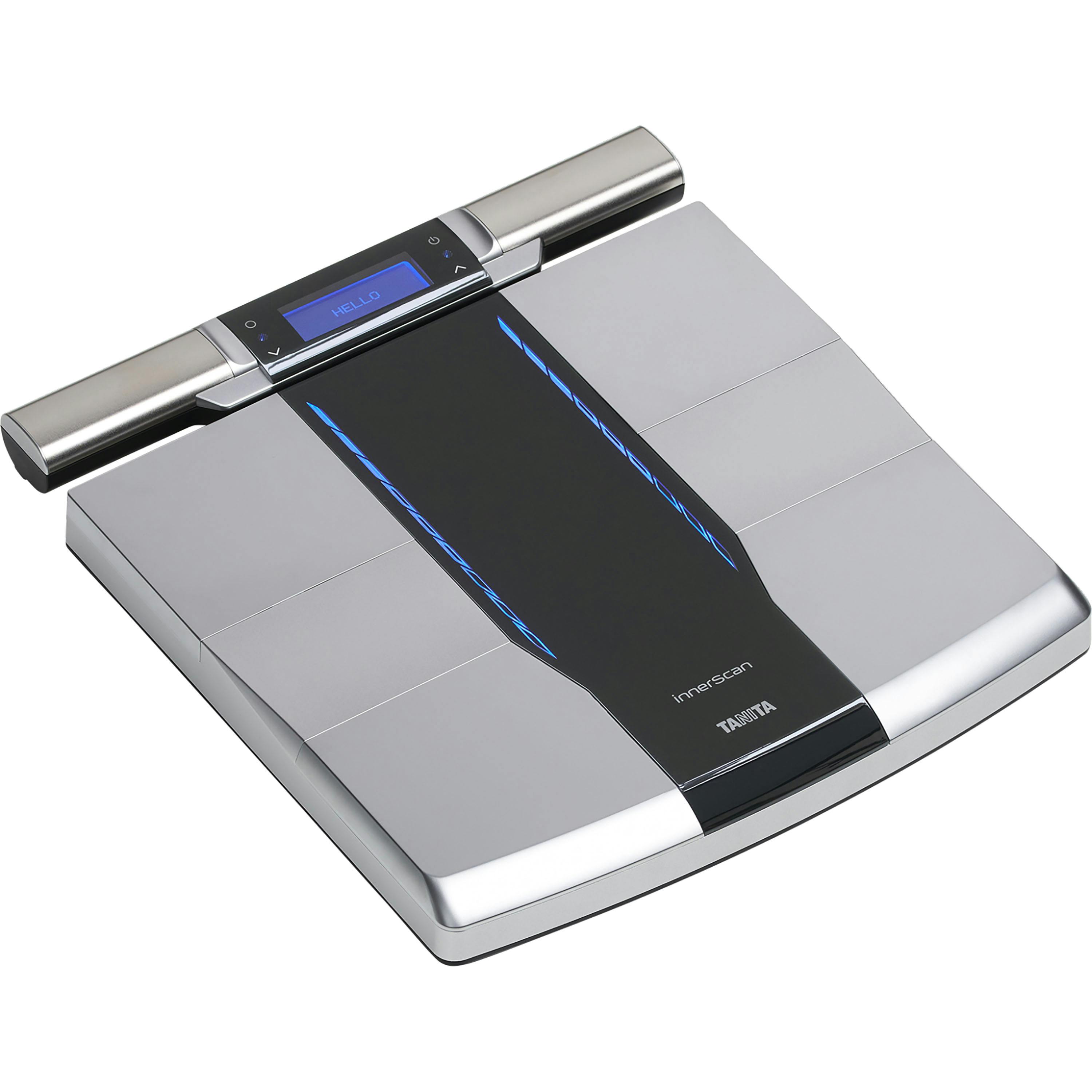 Het scherm van de Tanita RD-545HR trek je via twee handvaten omhoog. Dit onderdeel is middels een kabel met de weegschaal verbonden. Het voordeel hiervan is dat je de gegevens van dichtbij kunt aflezen. Bovendien bevatten de handvaten sensoren. Hiermee doet het apparaat een grondige lichaamsanalyse, waarna het twaalf gemeten waarden naar de MyTanita-app op een smartphone doorstuurt. De RD-545HR onderscheidt zich van vergelijkbare producten door tevens de hartslag te meten. Verder voert deze weegschaal een vet- en spiermeting van armen, benen en torso uit.