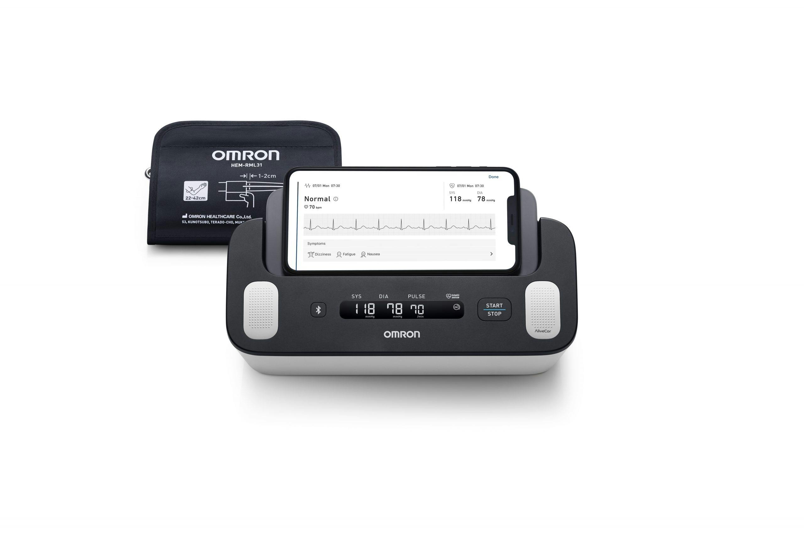 De Omron Complete vervult twee functies. Dit product meet namelijk je bloeddruk en maakt elektrocardiogrammen (hartfilmpjes). Het werkt eenvoudig. Leg een smartphone in de aanwezige houder en lees in de Omron Connect-app de gemeten gegevens af. Je meet de bloeddrukwaarden via de bijgesloten band voor de bovenarm. Voor het maken van een elektrodiagram druk je met beide duimen op de sensoren van het meetapparaat. Wil je alleen je bloeddruk monitoren, dan kun je bij deze fabrikant ook terecht voor allerlei goedkopere meetapparaten.