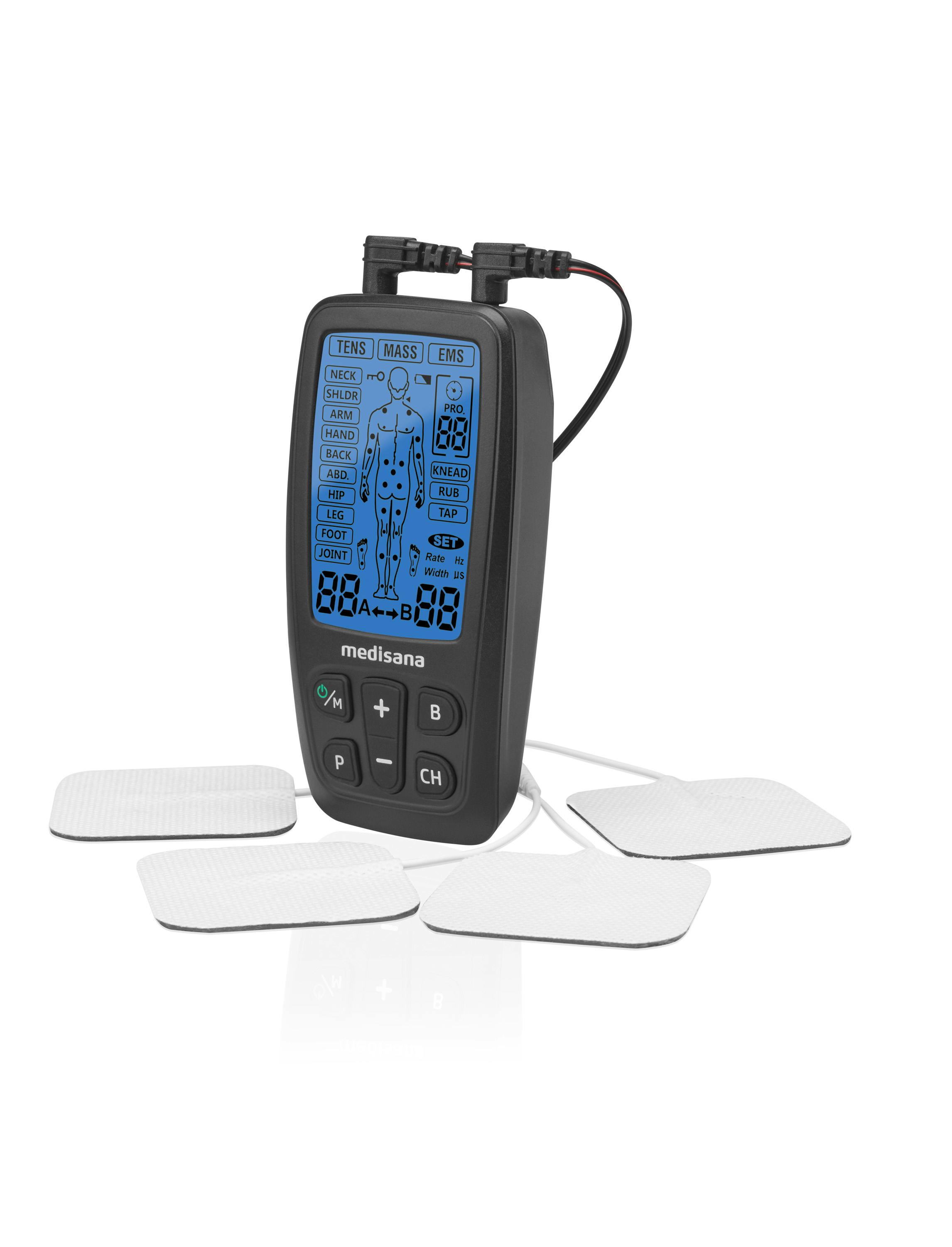 De Medisana TT 205 is een betaalbaar apparaat om je spieren te behandelen. Vier elektroden zijn middels twee draden aan de hoofdunit bevestigd. Je kiest op het blauwverlichte scherm welke spier(groep) je wilt behandelen, zoals je nek, schouders, rug of been. Je hebt vervolgens keuze tussen diverse massage- en elektrotherapieprogramma’s. Bepaal aan de hand van veertig niveaus de gewenste intensiteit. De behuizing bevat een oplaadbare accu met een capaciteit van 500 mAh. Voor oplaaddoeleinden bevat de productdoos een usb-kabel.