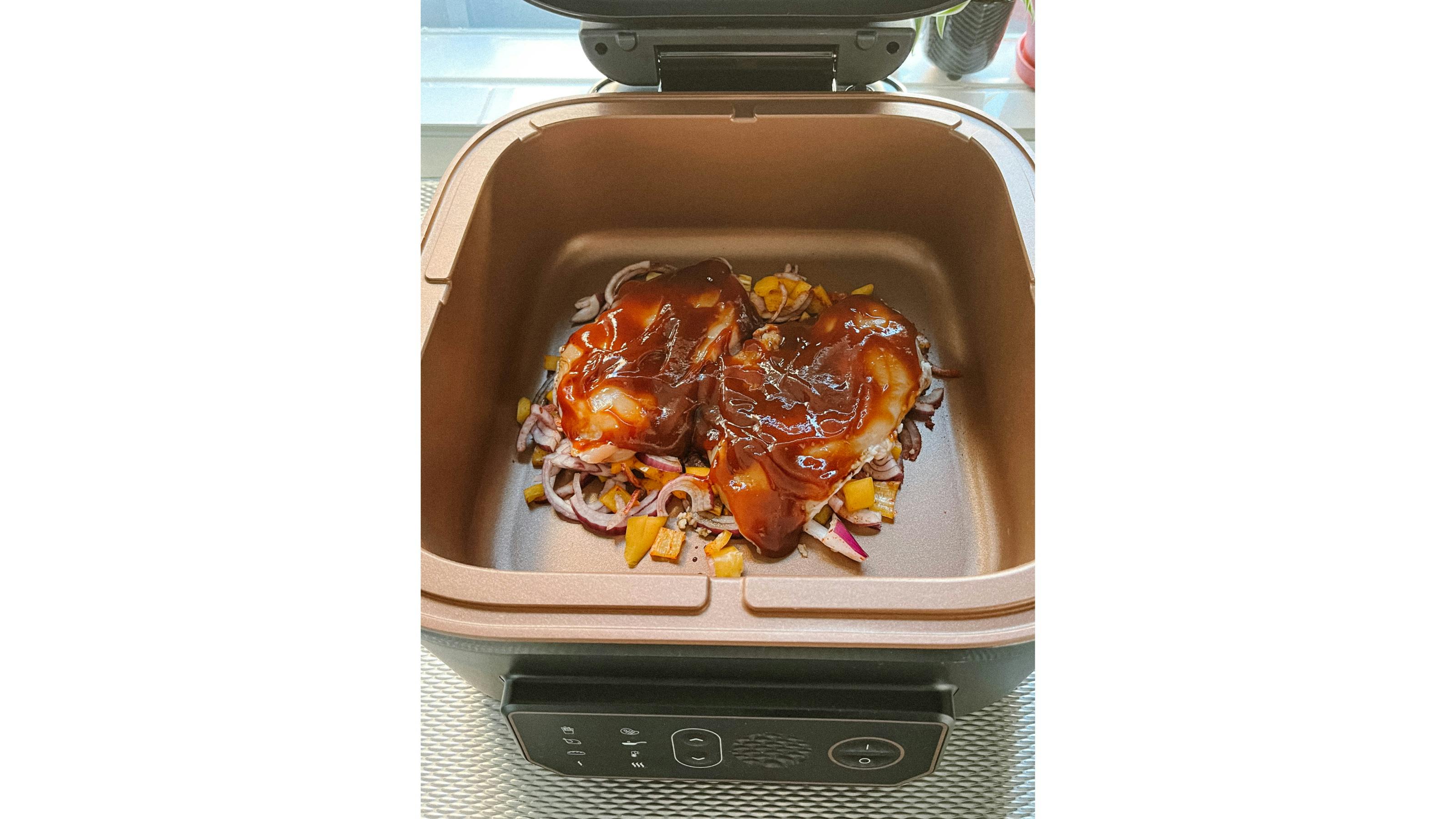 "Door het uitproberen van de Russell Hobbs Satisfry Air & Grill Multicooker werd ik getriggerd om ook iets met de slowcooker-functie te doen. Ik was niet zo bekend met de slowcooker, wel van gehoord natuurlijk, maar je koopt niet 'even' een slowcooker om uit te proberen of je dat wat vindt. Ideaal dus dat deze functie óók in de Multicooker zit (sterker nog: het is 1 van de 7 functies). Zo heeft deze Multicooker ook nog een airfryer-functie wat ideaal is om ingrediënten knapperig van buiten en mals van binnen te maken. Airfryen betekent bakken, braden en een heerlijk krokant korstje met weinig tot geen olie. Vlees blijft mals en sappig omdat de vleessappen worden vastgehouden tijdens de bereiding. Ideaal dus als je niet wilt inleveren op smaak, maar wel gezond & snel maaltijden op tafel wilt zetten.