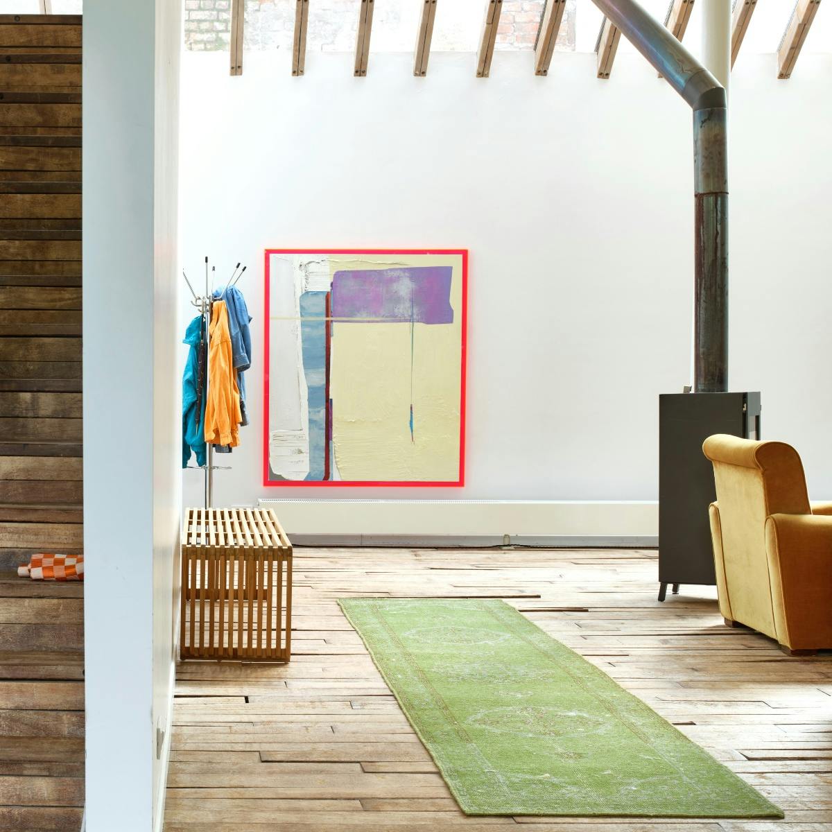 - Kleur voeg je eenvoudig toe door het neerleggen van een vloerkleed. Lekker wollig voor de koukleumen onder ons of eentje van jute als je meer van een basic of Scandinavisch interieur houdt. Je bakent er in een open ruimte het zitgedeelte mee af en creëert daardoor meteen meer gezelligheid. Heb je een vrij basic interieur? Durf dan met het vloerkleed zeker te knallen.