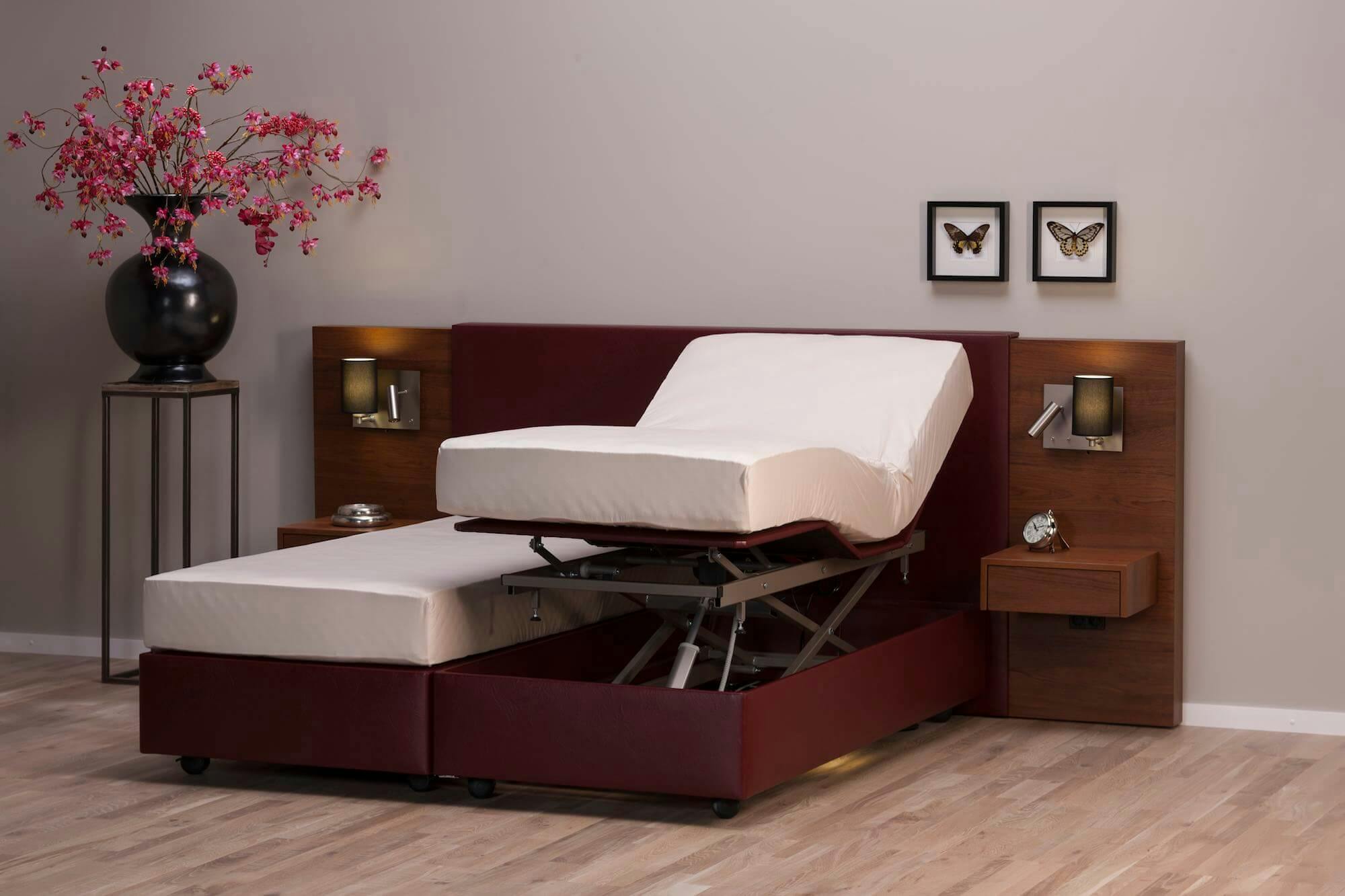 Zie je meteen een ongezellig ziekenhuisbed voor je? De nieuwste hoog/laagbedden zijn verre van dat. Sterker nog, je ziet op het eerste gezicht niet eens dat je met een verstelbaar bed te maken hebt.