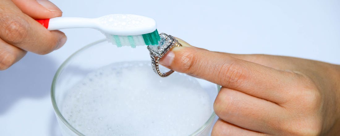 Door ophoping van vuil en huidoliën worden de meeste sieraden op den duur dof. Vaak vergrijzen ze zelfs, vooral zilveren sieraden. Goud slaat eerder wat groenig uit. Je kunt je sieraden voor een professionele reiniging naar een juwelier brengen. Dat is misschien een goed idee als er waardevolle edelstenen in zitten, zoals diamanten. Maar je kunt zelf ook aan de slag. Er zijn huis-tuin-en-keukenmiddeltjes waarmee je prima uit de voeten kunt. Een zachte tandenborstel en dito doek bij de hand? Let’s go!