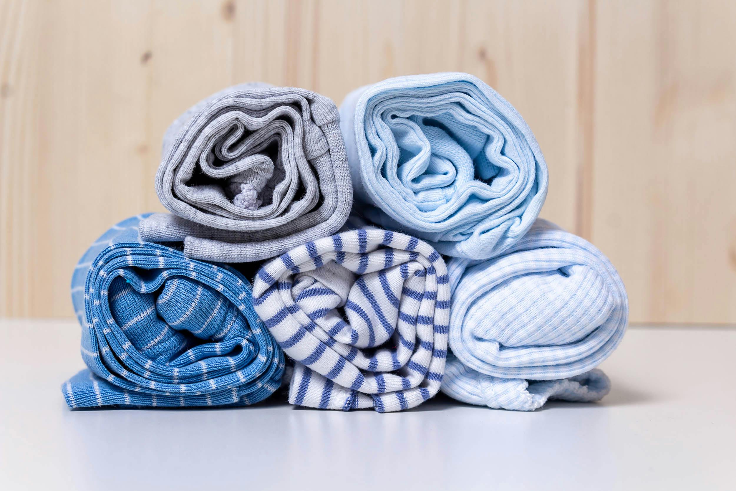 🧺 Vouw je kleding niet op, maar rol je shirts, broeken en jurkjes zoveel mogelijk op.