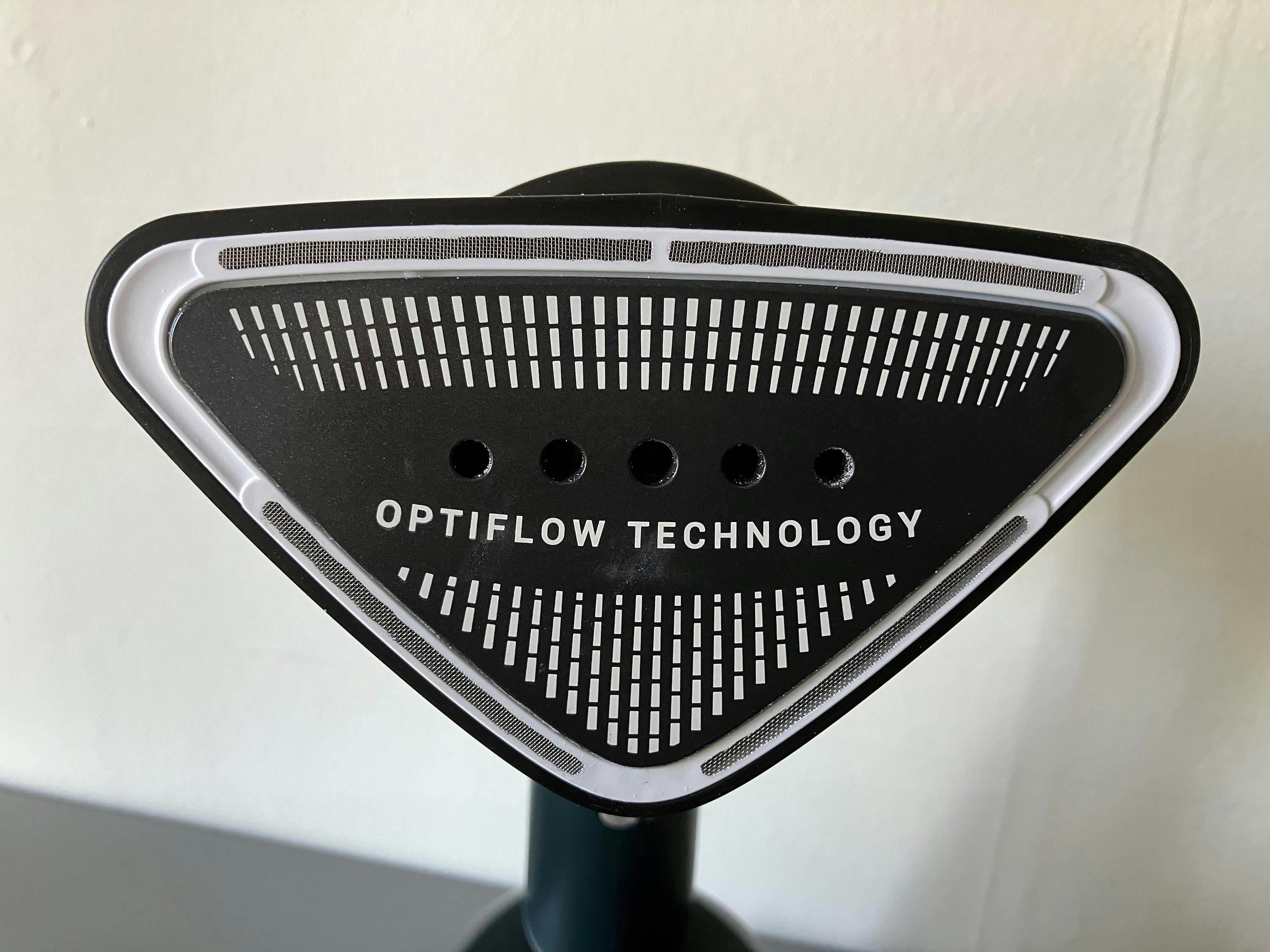 Zoals gezegd is de Tefal AeroSteam uitgerust met zuigkracht. Schakel je een van de twee standen waarop dit werkt, dan hoef je in principe zelf de kleding niet meer strak te trekken; dat doet het apparaat dan automatisch. Daar komt wel wat geluid bij kijken, geluid dat in de verte – niet heel vreemd – aan een stofzuiger doet denken. Staat de zuigstand aan, dan zie je inderdaad hoe de stof tegen de zoolplaat wordt gezogen.