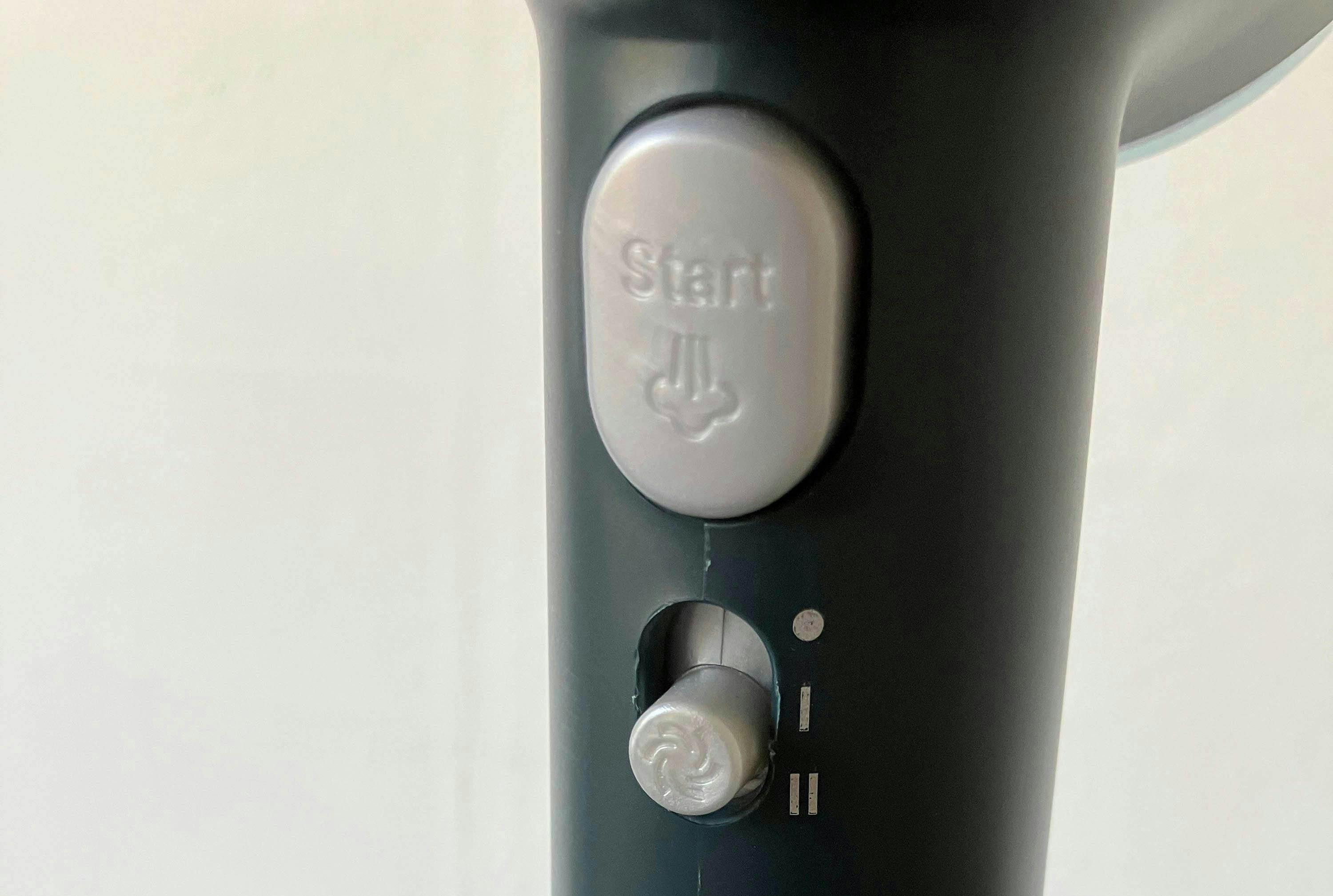 Op het apparaat zitten naast de aan-/uitknop nog twee knoppen: eentje die je indrukt om te beginnen met stomen en eentje waarmee je tussen de drie verschillende standen schakelt: alleen stoom, stoom met zachte zuigkracht en stoom met turbo zuigkracht. Op die zuigkracht komen we verderop nog terug.