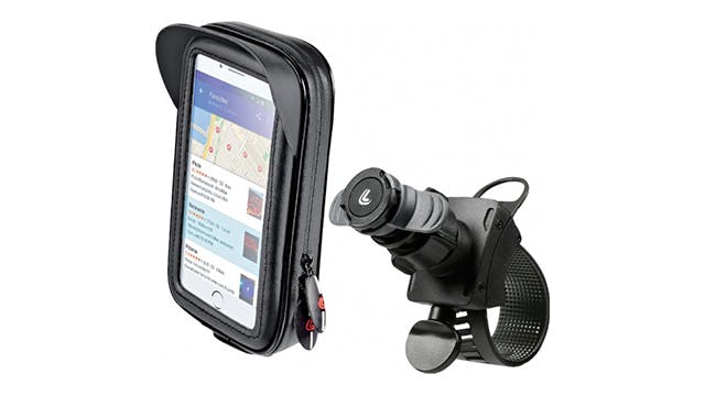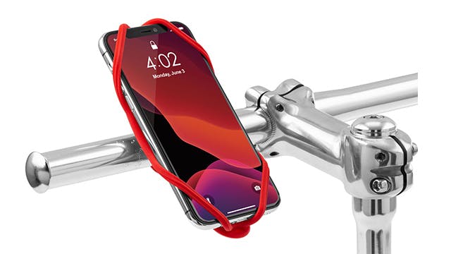 Met de Bike Bundle II van SP Connect zit je smartphone muurvast op het stuur. Het bedrijf fabriceert verschillende versies voor onder meer de iPhone en de meeste Samsung-toestellen. Daarnaast bestaan er ook uitvoeringen voor enkele modellen van Huawei en de Google Pixel. Monteer de montagesteun met het geïntegreerde schroefmechanisme op het stuur en klik het smartphonehoesje hierop vast. SP Connect levert ook nog een extra weerbestendig hoesje mee. Handig is dat je het scherm negentig graden kunt draaien.
