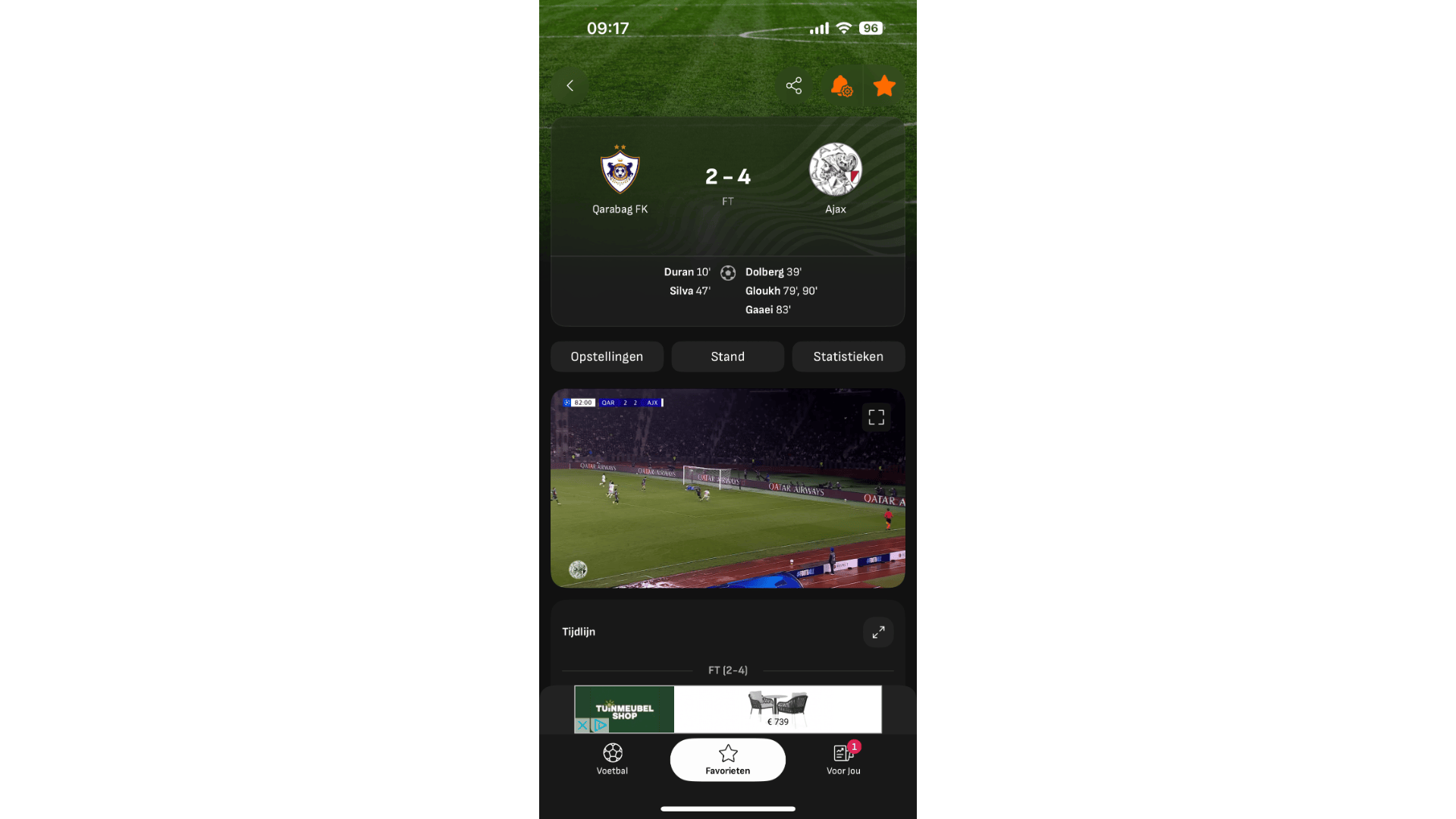 LiveScore houdt je altijd en overal op de hoogte van je favoriete voetbalteams. Geef eerst aan welke clubs en nationale elftallen je wilt volgen. Een pluspunt is dat je hierbij ook teams uit lagere divisies kunt selecteren. Kies vervolgens de gewenste pushnotificaties, zoals wedstrijdmeldingen en nieuwsupdates. Bij belangrijke gebeurtenissen zoals een doelpunt, rode kaart of toegekende penalty verschijnt er een melding op jouw mobiele toestel. Graaf je dieper in de instellingen, dan kun je zelfs notificaties van favoriete spelers ontvangen. Denk hierbij bijvoorbeeld aan een wissel of het ontvangen van een gele kaart.