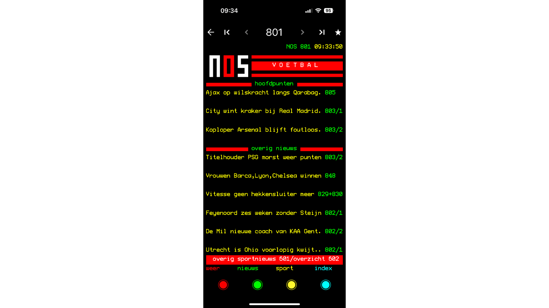 NOS Teletekst op televisies bestaat inmiddels ruim 45 jaar. Volgens de omroep had de dienst in 2024 bijna zevenhonderdduizend dagelijkse gebruikers. Zijn pagina’s als 601 (sportnieuws), 801 (voetbalnieuws) en 818 (uitslagen Eredivisie) voor jou gesneden koek, dan is de mobiele versie iets voor jou. Veel mensen weten namelijk niet dat je deze overzichtelijke dienst ook als app op een smartphone of tablet kunt installeren. In de App Store op een iPhone of iPad vind je deze toepassing onder de naam NOS Teletekst, terwijl de app in de Play Store Teletekst heet.