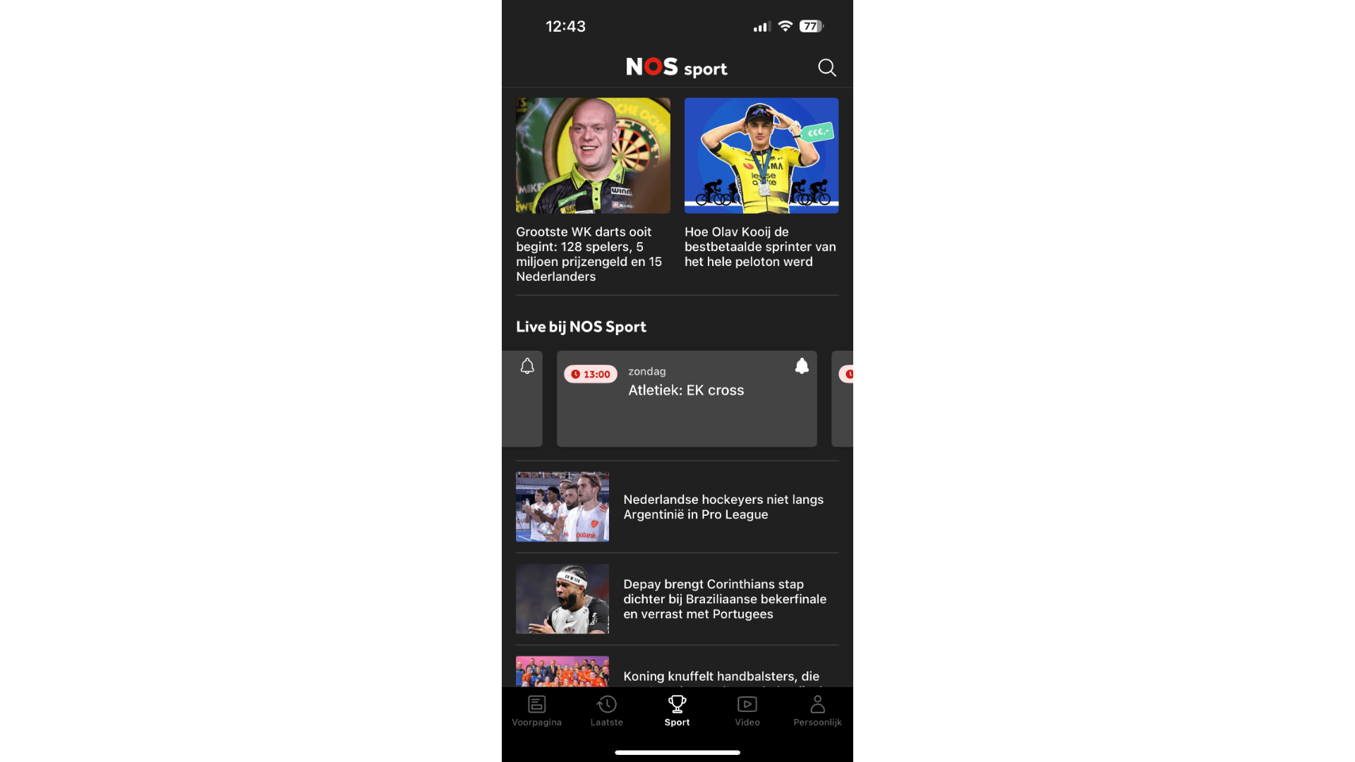 Zoals de naam al doet vermoeden, volg je met deze app het laatste nieuws. Je kiest eerst een aantal favoriete sporters, sporten en voetbalteams, waarna er een flitsende beginpagina met artikelen verschijnt. Naast berichten over sportieve prestaties onderscheidt Sportnieuws.nl zich door volop roddelachtige verhalen te publiceren. Voor het bekijken van standen en uitslagen is deze app dan ook niet zo geschikt, want Sportnieuws.nl schotelt zijn gebruikers voornamelijk nieuwsberichten voor. Je bekijkt eventueel wel live tussenstanden van belangrijke wedstrijden. Ten slotte is er nog een hoekje met podcasts.